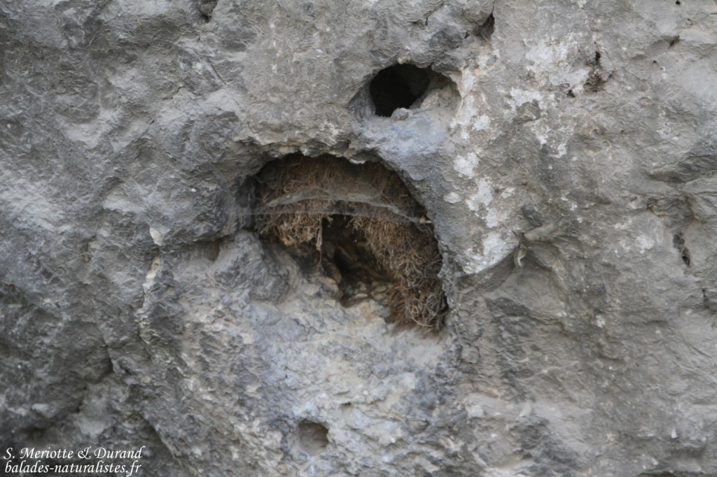 Dans le ciel, les Martinets à ventre blanc commencent à prendre possession du site. Pour l’instant, ils ne sont que deux, les premiers certainement d’une belle colonie. Les hirondelles de rochers sont, elles plus nombreuses, voletant par petits groupes autour des vestiges du fort qui domine le village. Encore plus haut, un milan noir probablement en migration puis un Circaète Jean-le-Blanc nous gratifieront de leur passage.