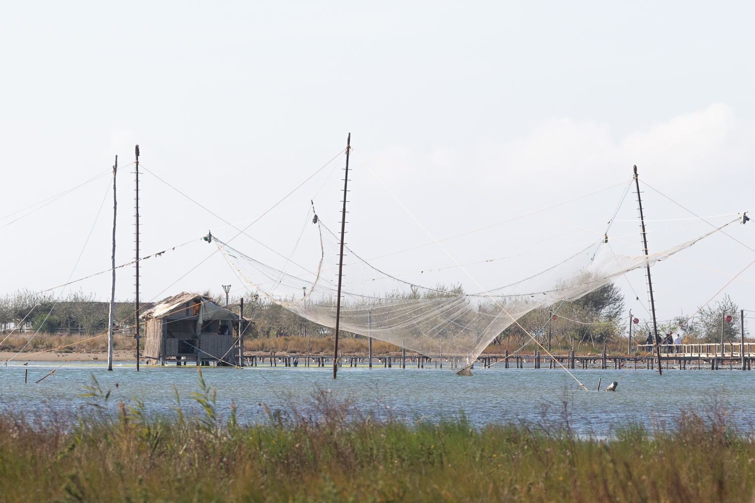Depuis le parking, un sentier sur pilotis serpente dans la forêt de pins pour rejoindre l’écomusée. Quinze minutes de marche suffisent (ou quelques minutes en voiture). À l’intérieur, une exposition simple mais passionnante raconte la vie de la lagune, sa faune et sa flore.
