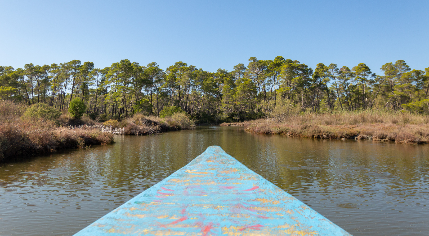 On y découvre surtout la star locale : le pélican frisé, majestueux oiseau emblématique du delta.