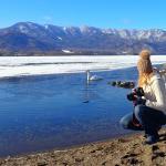 Après avoir bien profité de notre matinée dans le ryokan, nous nous rendons au lac Kussharo et plus précisément sur la presqu’île Wakoto, particulièrement intéressante pour l’observation des oiseaux. Des sources chaudes accessibles gratuitement libèrent les eaux de la glace. Le site est aménagé est vous pouvez vous y baigner, mais lorsque nous arrivons la place est déjà prise par deux papis du coin … nous ne les rejoindrons pas ! En revanche, ces eaux chaudes libèrent les abords du lac de la glace attirant un petit groupe de cygnes chanteurs. Petite séance photo dans un cadre splendide.