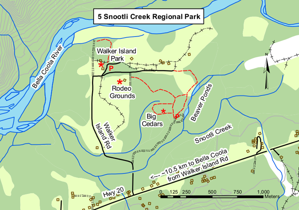 Rap Campsite est tellement agréable que nous avons du mal à décoller. Cela fait vraiment du bien de se poser un peu. Mais on finit par décoller pour partir balader dans une parcelle de forêt restée intacte aux arbres centenaires. Pour y parvenir emprunter la petite route qui tourne vers la droite avant d’arriver à Bella Coola en direction du champ de rodéo. La route enjambe un bras de la rivière. Faites un stop pour observer les nombreux saumons frayer.