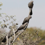 Tantale ibis et Bateleur des savanes immature, Parc national de Mahango