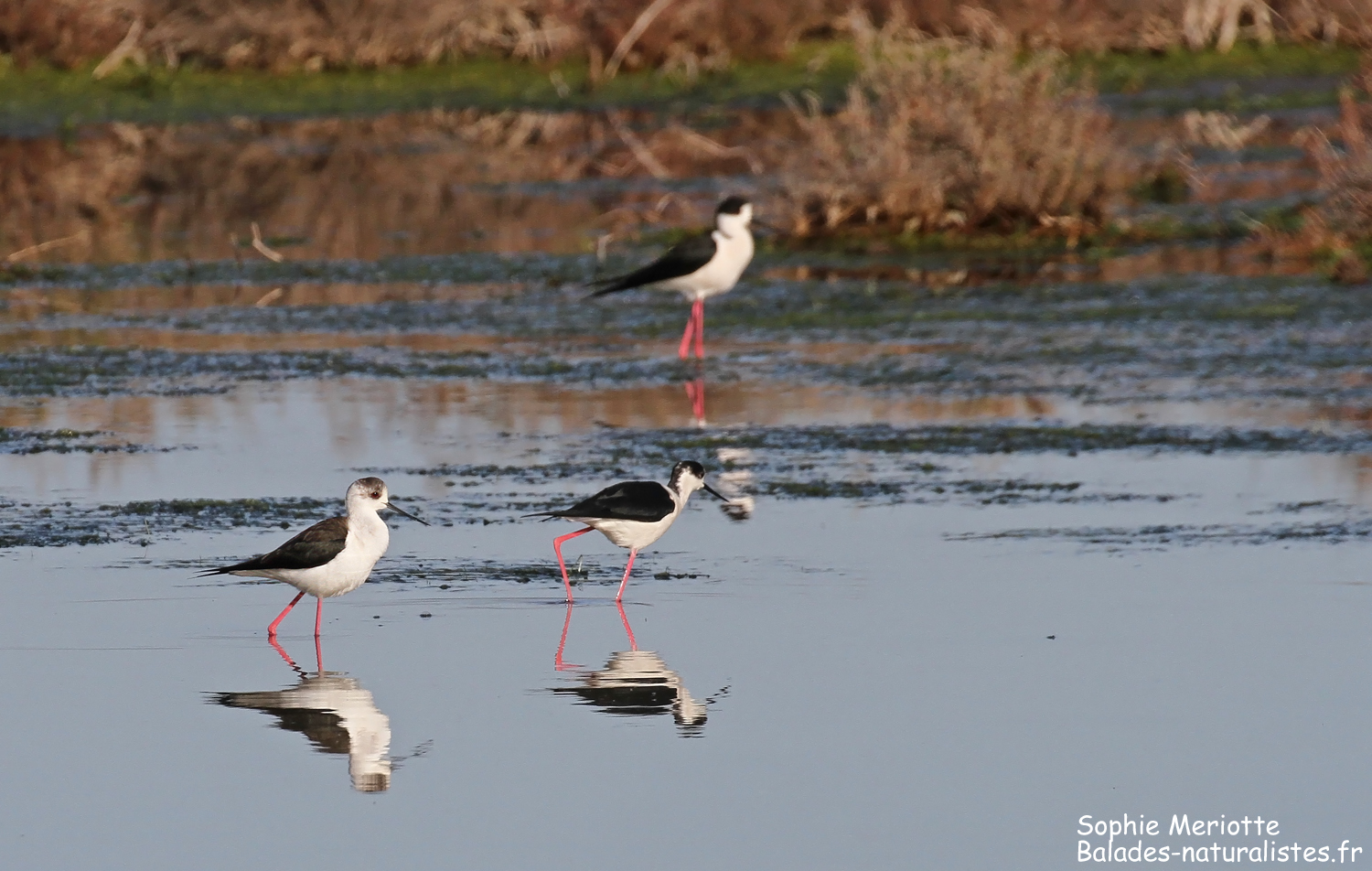 Les Goélands railleurs resteront hors de portée de l’objectif, autour de l’îlot où s’installe parfois la colonie. Cela sera-t-il le cas cette année encore ? Affaire à suivre ! Les échasses elles aussi prennent petit à petit possession des lieux en particulier les zones où les salicornes sont abondantes.