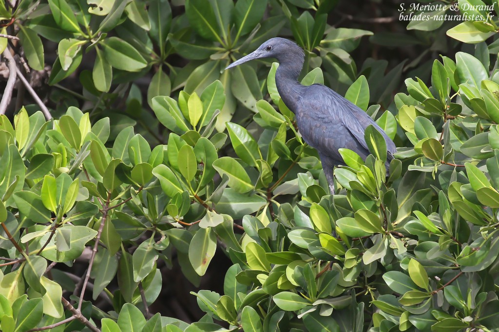 Sur les bords des bolongs, au pied des palétuviers, ces mêmes oiseaux recherchent les crabes violonistes. Dans une petite anse, un imposant  Héron goliath se tient à l’agachon. Il sait se montrer patient et attendre qu’un imprudent poisson passe à proximité. Le passage de  notre pirogue ne semble pas le déranger, ici l’espèce semble bien moins craintive qu’en d’autres terres africaines…