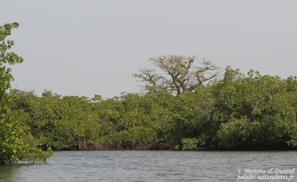 Nous descendons lentement le fleuve, des Cormorans africains s’envolent des palétuviers, ces arbres amphibies capables de se développer à la fois les racines dans l’eau et de supporter des phases d’à secs. Pour pouvoir croître dans cet écosystème littoral où les contraintes environnementales sont difficiles, l’espèce a dû développer des adaptations  physiologiques afin de pourvoir notamment résister à la présence de sel.