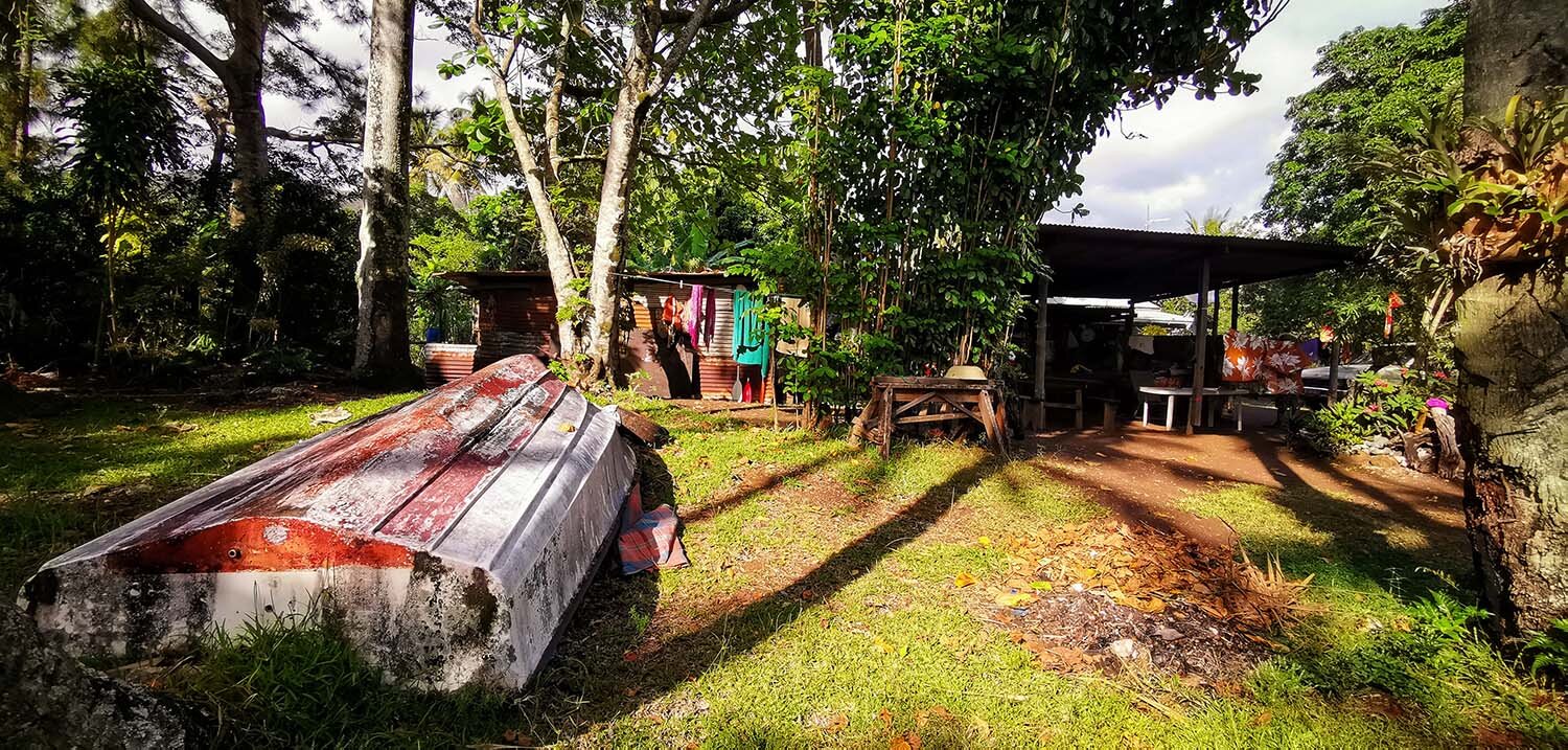Camping incontournable de petit Borindi : chez Mamie Georgette. Au milieu de la cocoteraie, le site est en effet magique. Vous ne pouvez donc que vous laisser envoûter par le charme du lieu. Sous la voûte étoilée chantée par l’un des plus célèbres groupes calédoniens, je décèle la croix du Sud se dessinant entre les palmes bruissant sous la légère brise nocturne. Guide pour les marins au milieu de l’océan, c’est peut-être ici que chacun peut retrouver sa route.