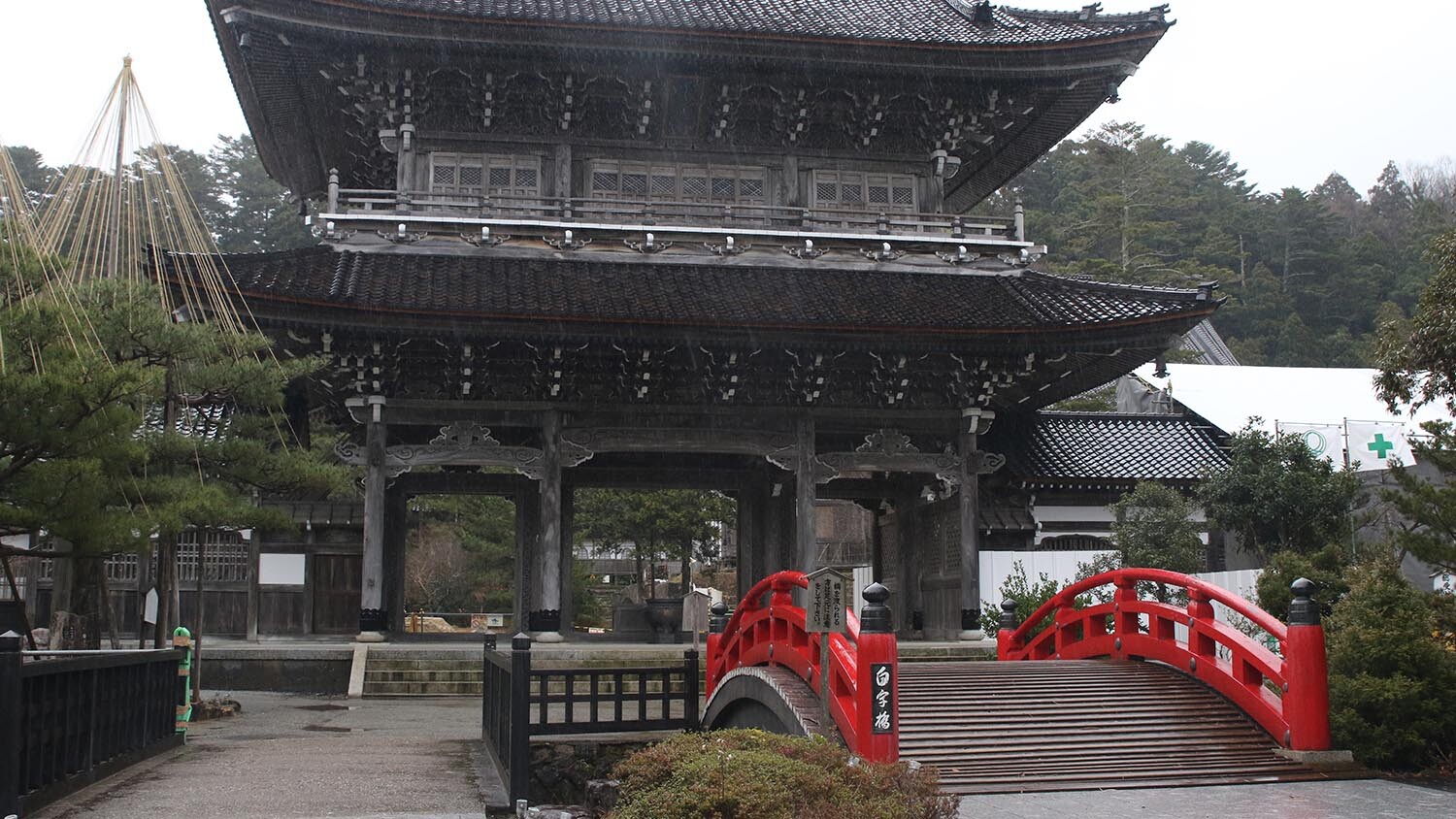 Je récupère la route 249 et roule jusqu’au temple Soji-ji soin où j’arrive un peu avant midi. Prenez le temps de faire une halte dans ce superbe temple, l’un des deux principaux de la branche sôtô du bouddhisme zen de tout le Japon. Construit en 1321, il contrôla pendant 500 ans 16000 temples à travers l’archipel. Passage obligé au début de la visite : le pont de la longévité. Longue vie heureuse à ceux qui le traverseront !