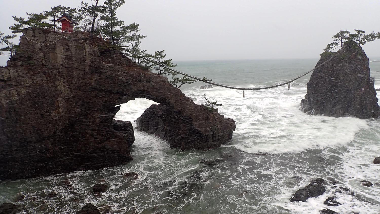 Je reprends la voiture et fait un rapide arrêt aux salins à la sortie de la ville. Mais la tempête s’intensifie et de hautes vagues menacent de submerger la route … Je ne m’attarde donc pas et décide d’entamer ma descente vers Kanazawa.