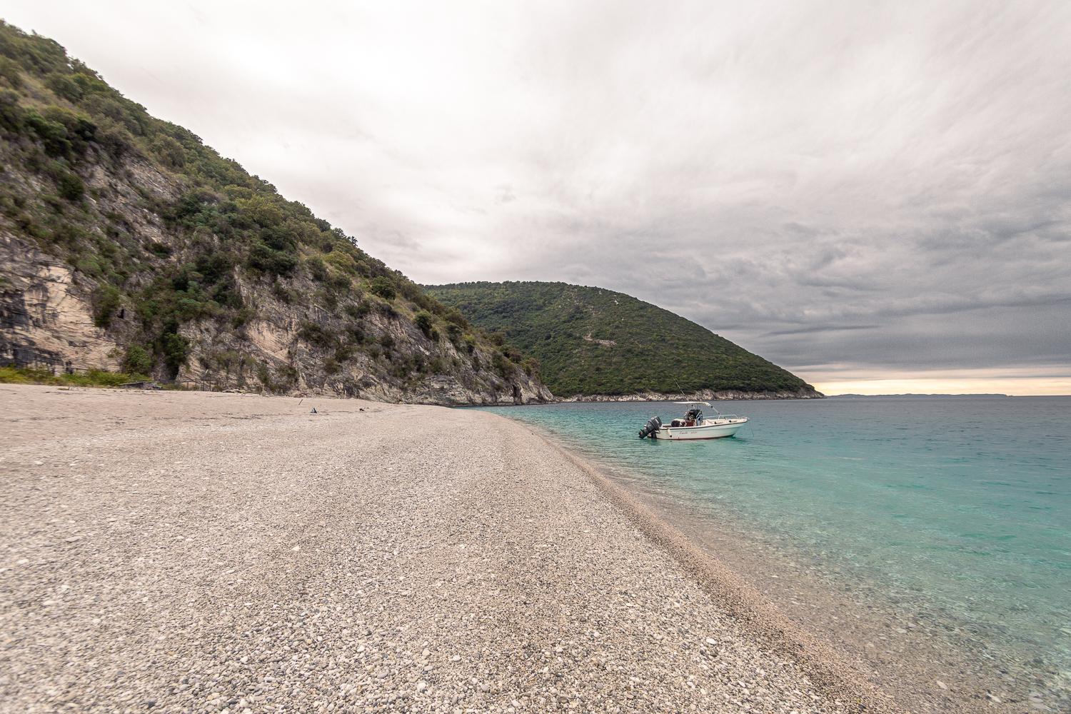 De retour à Ksamil, la météo reste maussade. Les plages, désertées et silencieuses, offrent une autre forme de beauté : celle des lieux endormis hors saison.