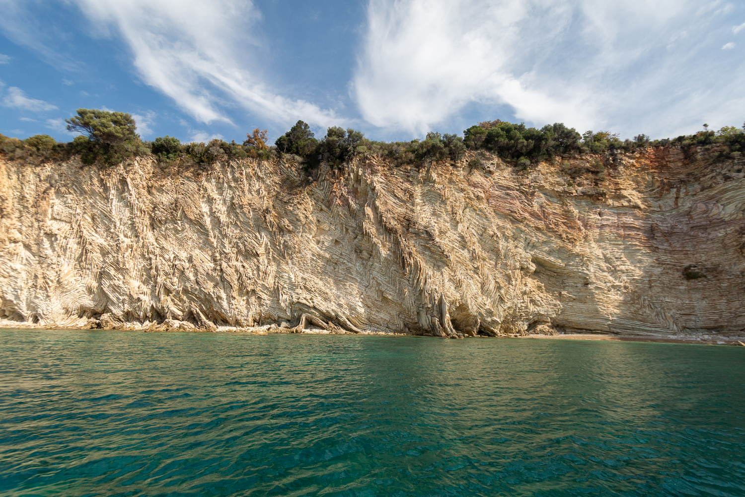 Plus loin, les falaises de Gremina éblouissent par leur blancheur. L’eau est limpide, parfaite pour un moment de snorkeling, même si les poissons se font discrets.