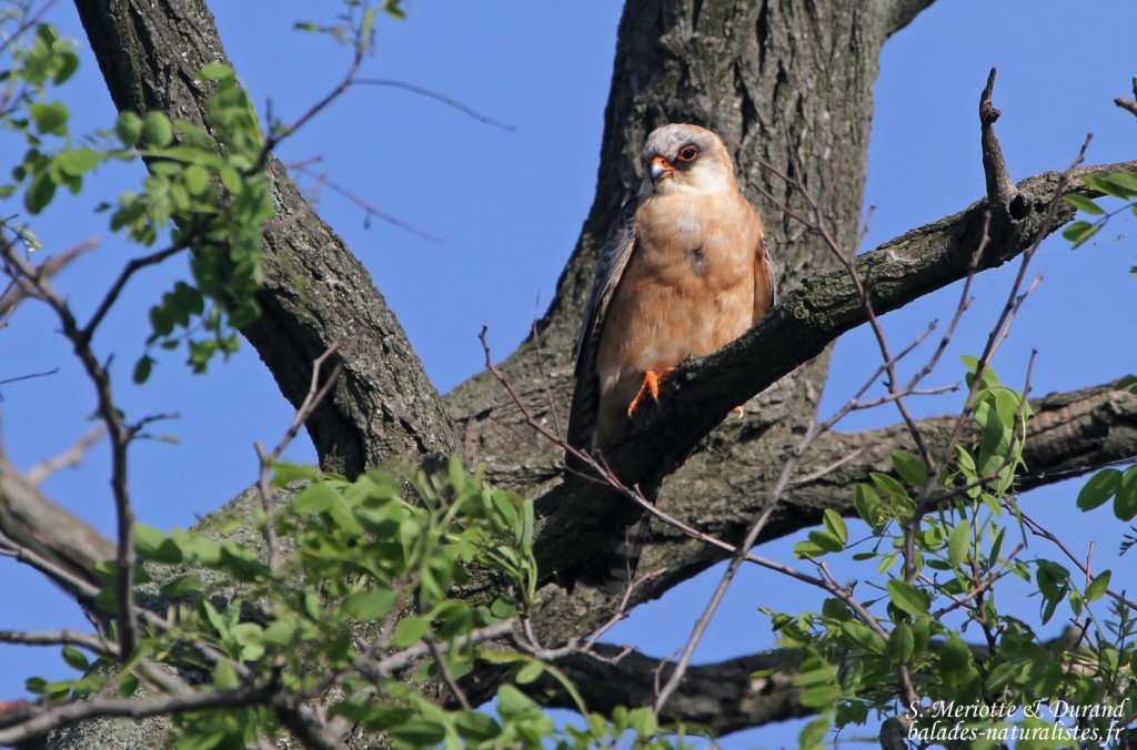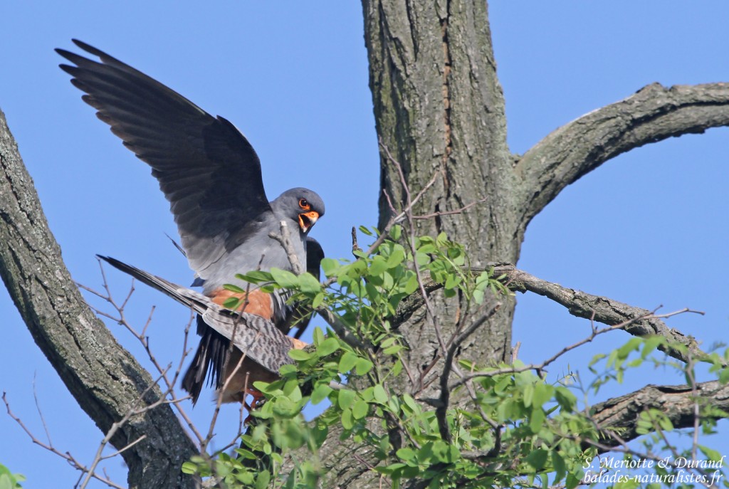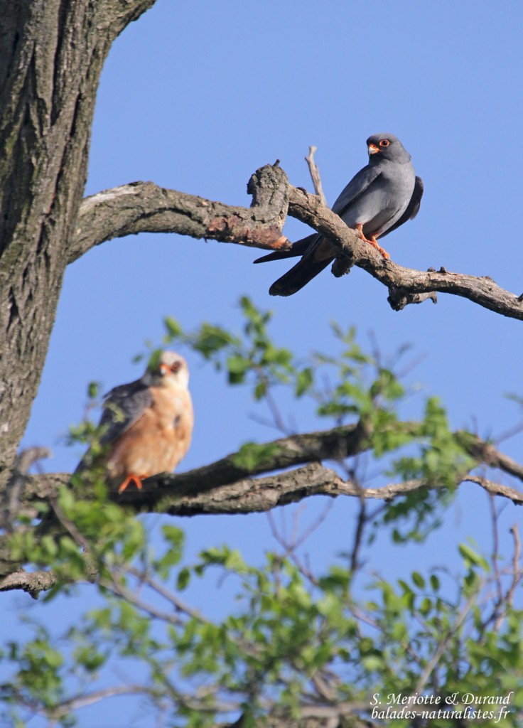 Nous terminons la journée, et notre voyage par la même occasion, par une séance photo sur un couple de kobez assez coopératif. Le mâle scrute les alentours et crie. Voilà l’objet de ses convoitises … Il finit par décoller pour se poser sur la femelle. Malheureusement, notre angle de vue ne nous permet pas de bien observer la scène dissimulée derrière les branchages. Nous ne voyons que les acrobaties du mâle.