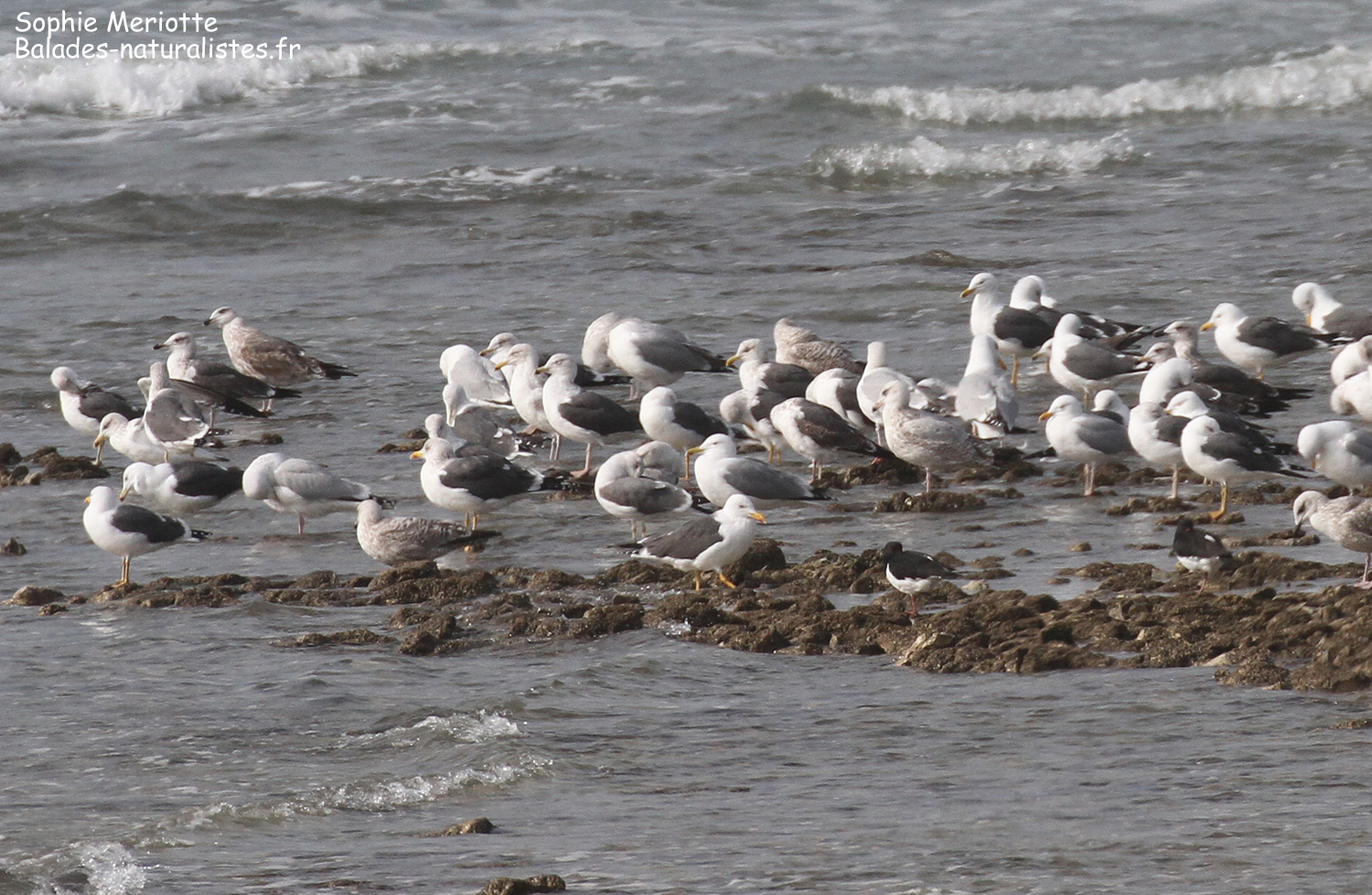 Au loin, au milieu d’un reposoir de goélands, se dissimulent 2 Goélands pontiques, un 2ème année ainsi qu’un adulte. Bien trop éloignés pour tenter ne serait-ce qu’une photo souvenir. Par chance nous en retrouvons un autre un peu plus loin sur le lieu-dit “La Vitrerie”, à proximité du phare. Il s’agit à nouveau d’un adulte, et cette fois-ci, il est possible de réaliser une image. Si si, on le voit, il est au milieu !