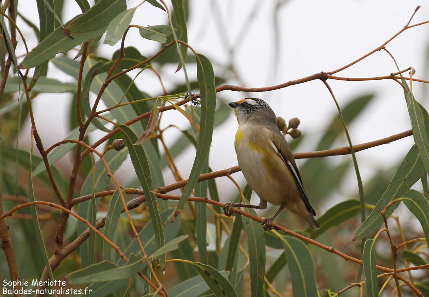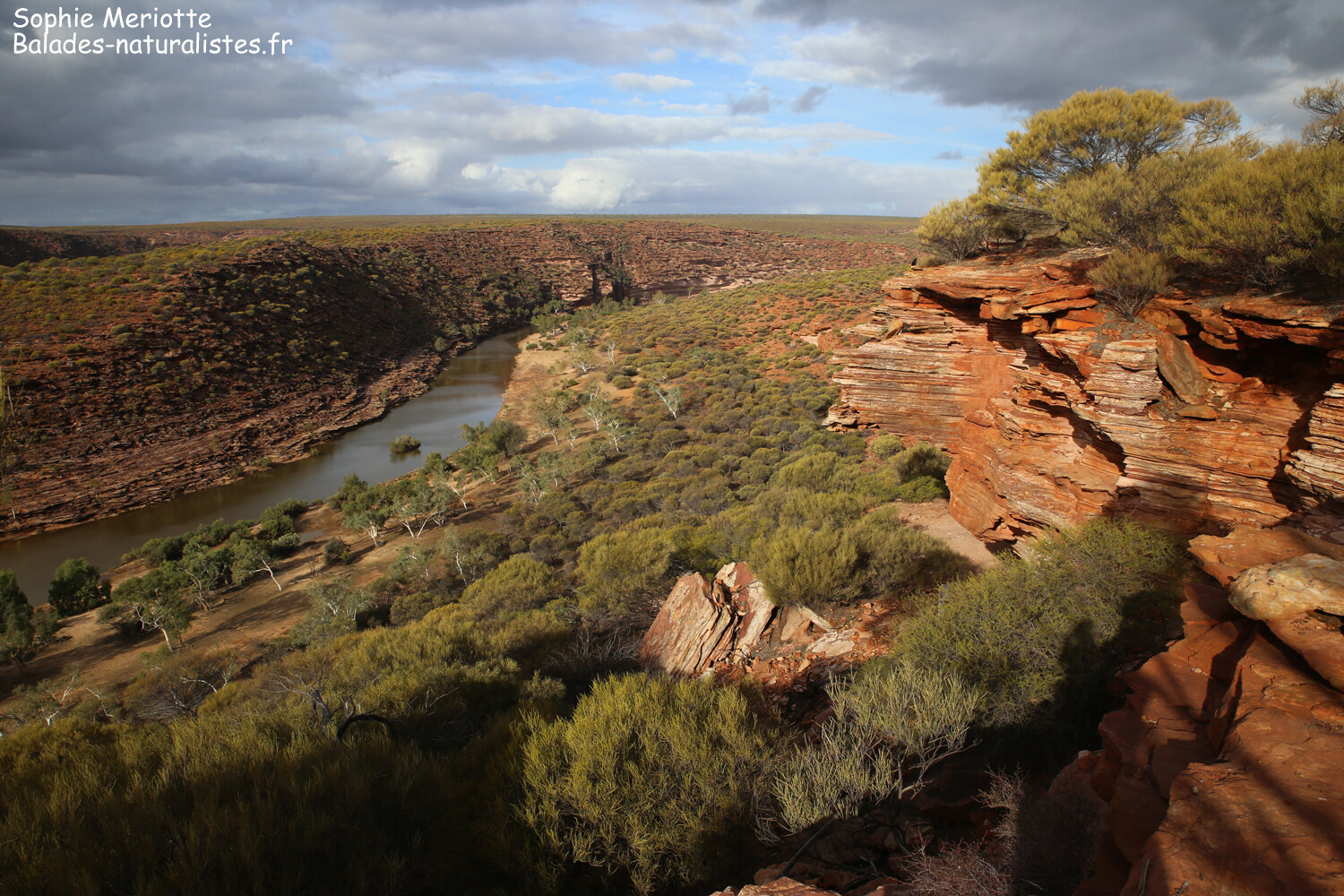 Le sentier surplombe les falaises avant de descendre au fond du canyon. Quelques eucalyptus au bord de la rivière attirent quelques oiseaux : pardalote pointillé, acanthize troglodyte …