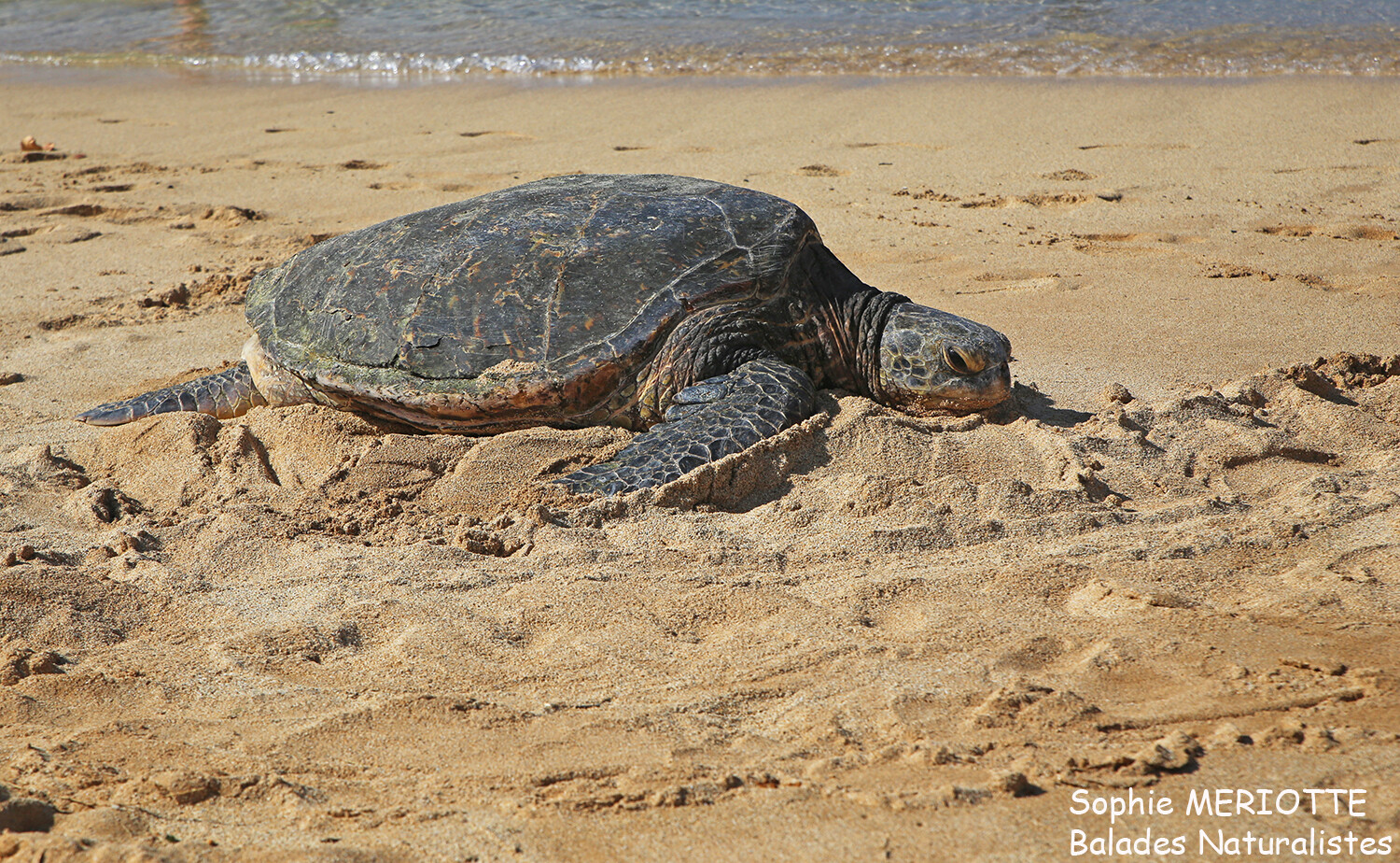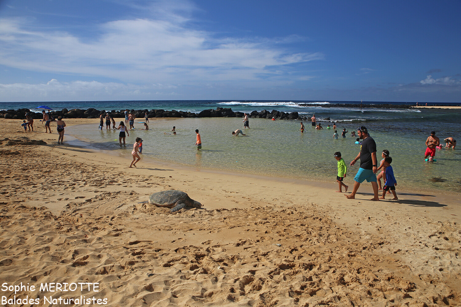 Je commence par faire une halte à Poipu beach, sympa pour le snorkeling mais également pour l’observation des tortues vertes, appelées ici Honu, qui viennent prendre le soleil sur la plage au milieu des touristes.