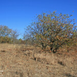 Ce matin, nous décidons de rouler à la sud-africaine à la recherche des grands prédateurs. Sur la carte des obs du camp, une piste semble intéressante car elle longe sur plusieurs km la rivière Létaba. Nous la suivons. La végétation évolue rapidement le long de cette piste donnant une impression de paysages d’automne des Alpes de Haute Provence. Des arbres de 3-4 m de haut dont les feuilles, aux coloris multiples variant du marron au vert, se détachent et commencent à joncher le sol. Cela nous donne envie d’aller ramasser les champignons. Toutefois, on sait ce qui peut se promener dans ces bois … nous éviterons donc !