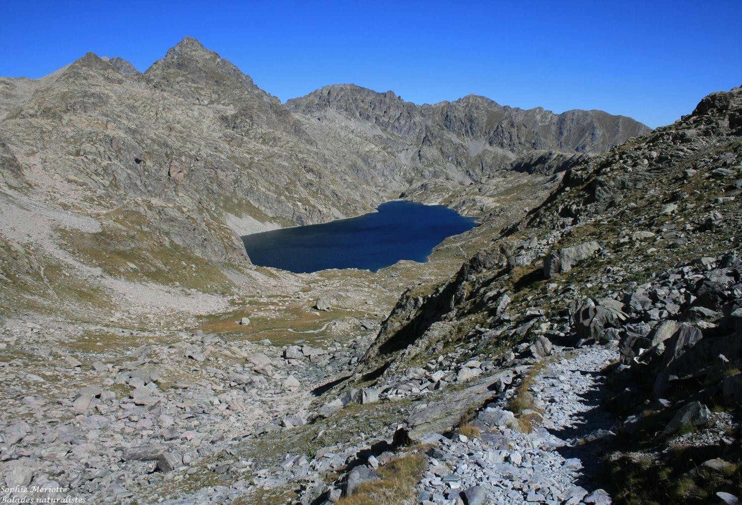 Le chemin redescend alors à travers les pierriers. Ouvrez l'oeil ! il n'est en effet pas rare de croiser un bouquetin sur les rives du lac Basto. Si les mâles restent souvent sur les hauteurs en pleine journée, il est en revanche possible d'observer les femelles et leurs jeunes s'alimentant dans les prairies à plus basse altitude.