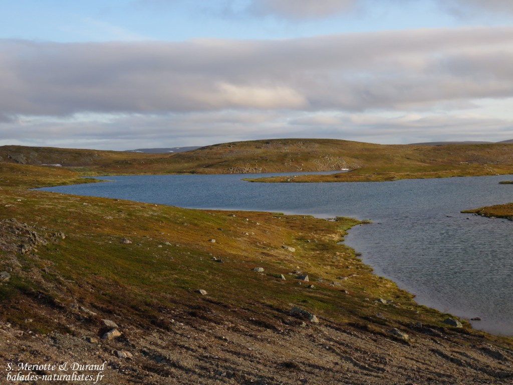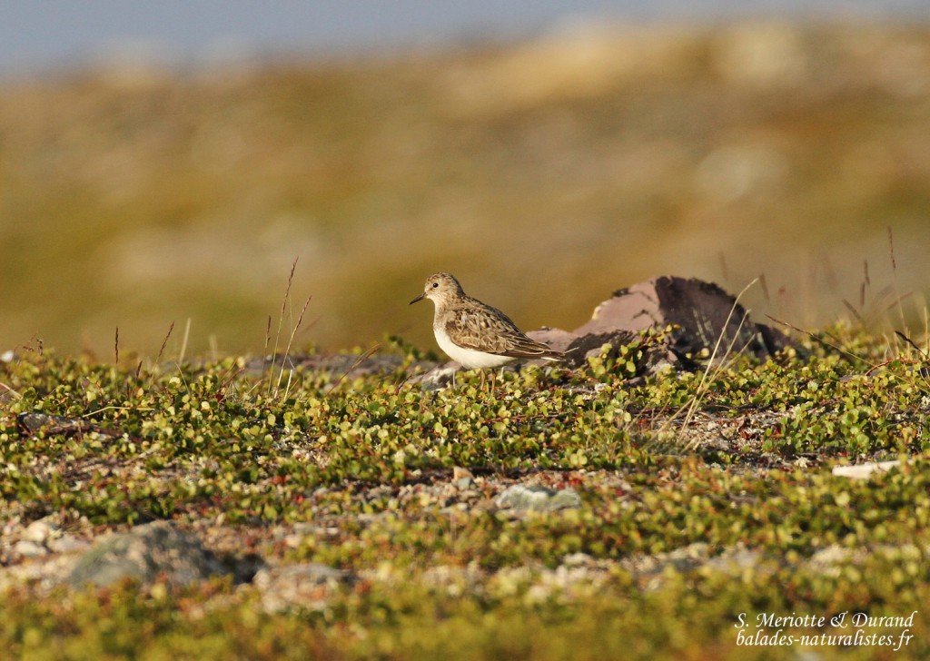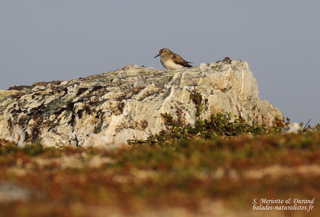 Nous arrivons au milieu de la nuit, qui ne semble pas en être une, sur le plateau, paysage lunaire où la vie semble s’être endormie. Un Labbe à longue queue sommeille au bord de la route alors qu’un Bécasseau variable, perché sur un rocher, veille sur son territoire.