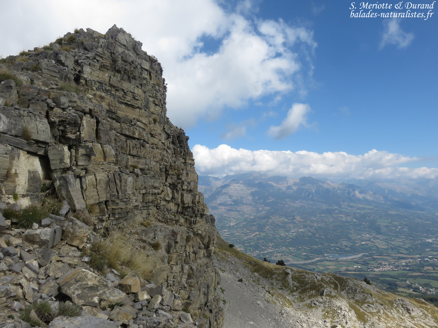 Quelques nuages commencent à s’amonceler sur le pic de Bure. Signal de notre départ. Nous gagnons le pic de Gleize où nous récupérons le sentier qui permet de suivre la ligne de crête au milieu des passages rocheux bien marqués par les cairns. Un groupe de Vautours fauves prend rapidement de la hauteur. Les grands oiseaux deviennent alors de simples points se laissant désormais glisser sans efforts vers d’autres horizons. Un Aigle royal leur emboîte le pas. Quant à nous, nous prenons la direction inverse et perdons de l’altitude pour finir par rejoindre le chemin emprunté à l’aller. Le week-end touche à sa fin !