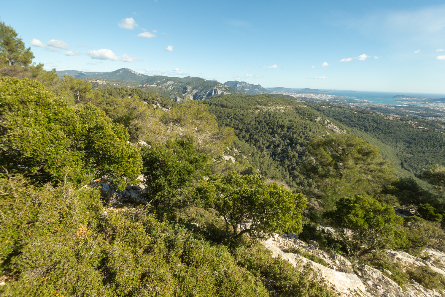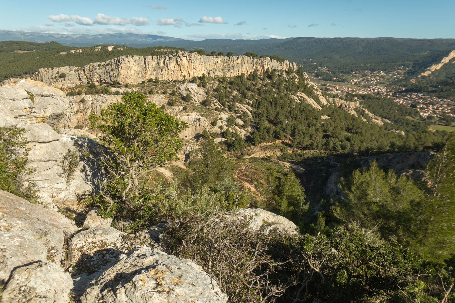 Nous finissons par arriver à la pointe à l'extrême ouest du massif. La vue se dégage en direction des calanques de Marseille tandis qu' au nord la ligne de Sainte-Baume s'étend telle une barrière.