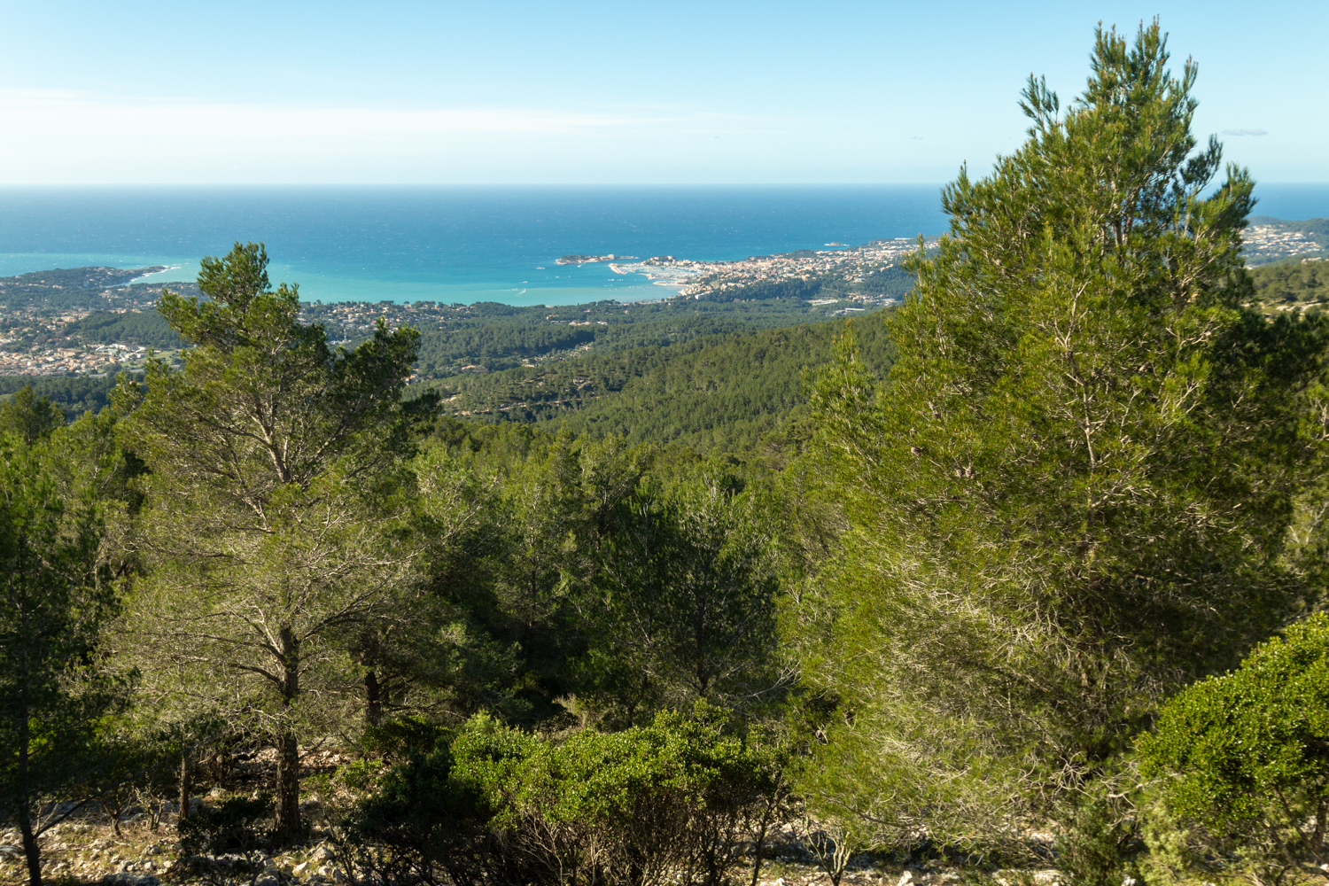 Au sommet, le panorama est exceptionnel : à l’est, la rade de Toulon ; à l’ouest, la baie de Sanary ; au sud, la Méditerranée à perte de vue ; au nord, les reliefs provençaux. Le site abrite également un ancien ouvrage militaire intégré au système défensif du littoral varois, rappelant l’importance stratégique de ces hauteurs.