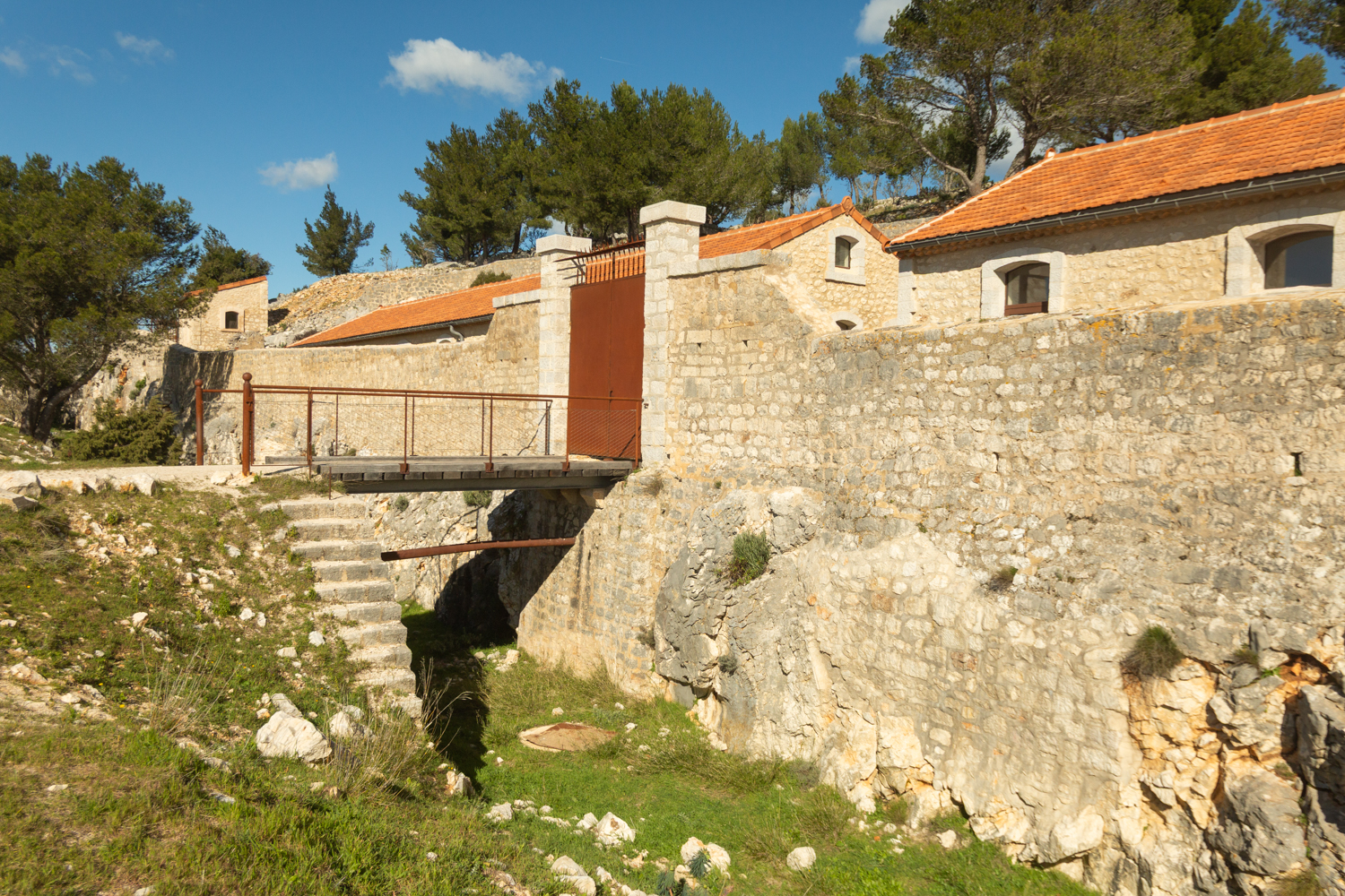 Implanté sur un relief stratégique, l’ouvrage bénéficiait d’un large champ de vision sur la Méditerranée et les axes terrestres. Comme d’autres fortifications de cette époque, il se caractérise par des constructions massives en maçonnerie, des casemates voûtées et des plateformes d’artillerie adaptées aux progrès de l’armement. Aujourd’hui intégré au paysage méditerranéen, envahi en partie par le maquis, il rappelle combien ces crêtes dominant la mer furent longtemps des points névralgiques pour la défense du littoral varois.