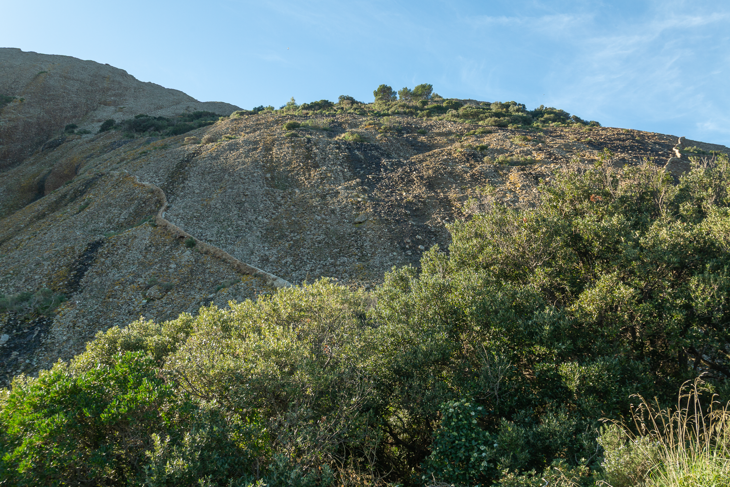 Le chemin, parfois escarpé mais accessible, offre une montée progressive entre végétation méditerranéenne, pins, lentisques et falaises nues, où nichent oiseaux et insectes thermophiles.