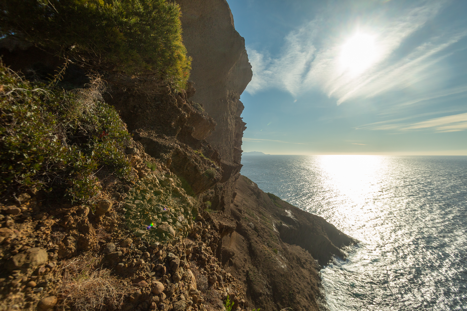 A nouveau, il convient de faire demi-tour pour redescendre vers un autre point de vue qui domine l’anse du sec. Le sentier traverse une végétation typiquement méditerranéenne : ciste de Montpellier, ciste cotonneux, ciste à feuille de sauge, pistachiers lentisques ou encore euphorbes arborescentes. Ici commence le royaume des fauvettes, essentiellement mélanocéphale, mais il est également possible de croiser la pitchou.