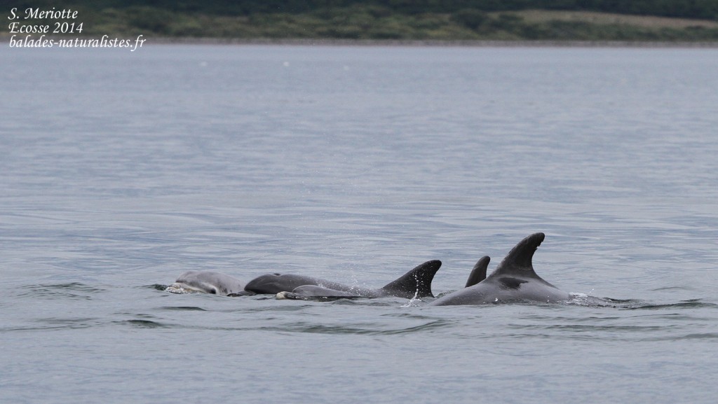 14 juillet : Nous arrivons aux environs d’Inverness en fin de matinée et gagnons la baie de Moray firth. Cette baie est réputée pour accueillir un groupe de Grands dauphins sédentaires venant chasser près du rivage à marée montante. Un des bons points d’observation se situe près du golf de Fortrose. Le site dessine une pointe à l’endroit où la baie se rétrécie.