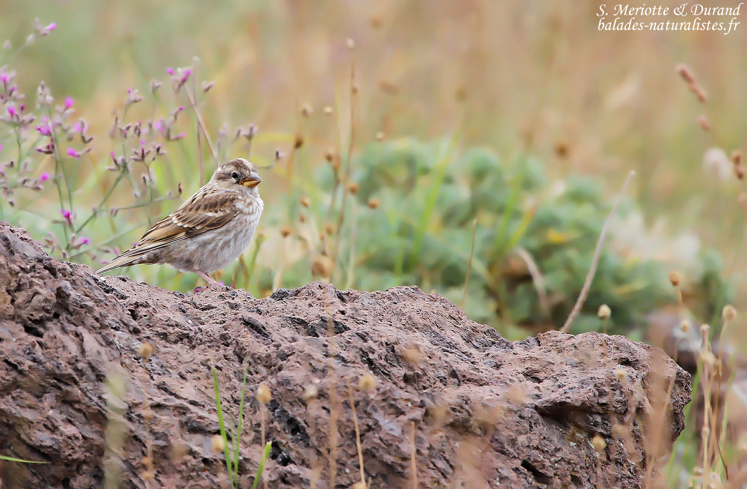 De retour à la voiture, nous gagnons les zones de prairies, situées juste au-dessus du village d’Antarut. Excellente matinée vouée à l’observation de l’avifaune locale. Sur les nombreux blocs de basalte parsemés à travers la végétation, viennent se poser tantôt un Traquet oreillard de la forme melanoleuca, un jeune Moineau soulcie, des Bruants mélanocéphales, des Bruants ortolans … Les jeunes sont déjà volants mais continuent à solliciter les adultes pour se nourrir. Une jeune Pie-grièche à poitrine rose, postée sur un bosquet, ne cesse de piailler jusqu’à ce que, enfin, un adulte lui apporte une sauterelle.