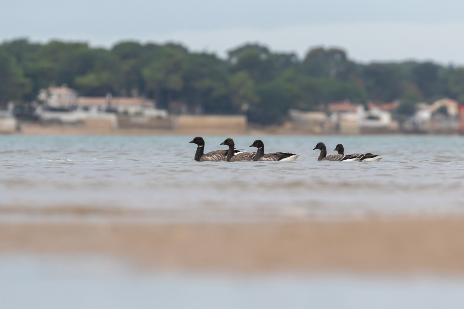 Au fur et à mesure que la mer monte ils se rassemblent sur de petits îlots. Ils ne sont pas les seuls à fréquenter cette baie à l’abri du vent. Tout comme sur l’île d’Oléron, un imposant groupe de bernache cravant a élu domicile ici pour leur halte migratoire voire pour y passer l’hiver. N’hésitez pas à jeter un coup d’œil sur mon article consacré à l’observation des oiseaux sur l’île d’Oléron.