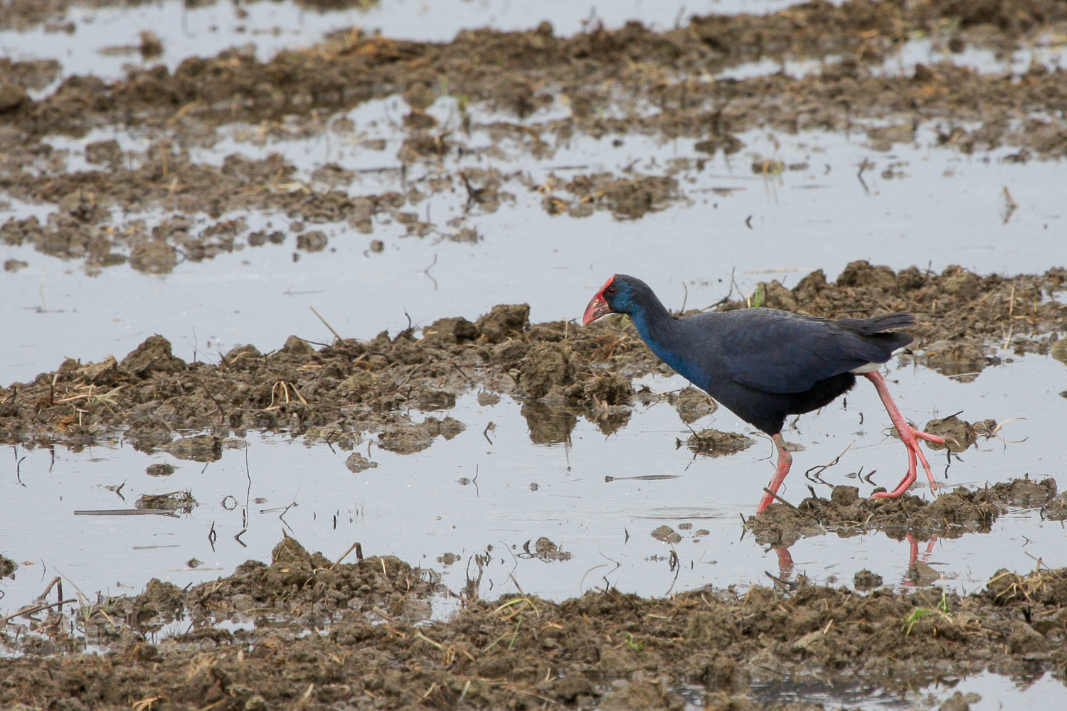 12 avril. Le soleil a du mal à se lever ce matin et une épaisse brume recouvre le paysage. Nous commençons notre exploration du Delta de l’Ebre par l’observatoire de Riet Vel géré par la SEO, l’équivalent espagnol de la LPO. Les Talèves sultanes sont toujours très nombreuses ici. Nous en dénombrons une quarantaine. Certaines parcourent les champs à sec…