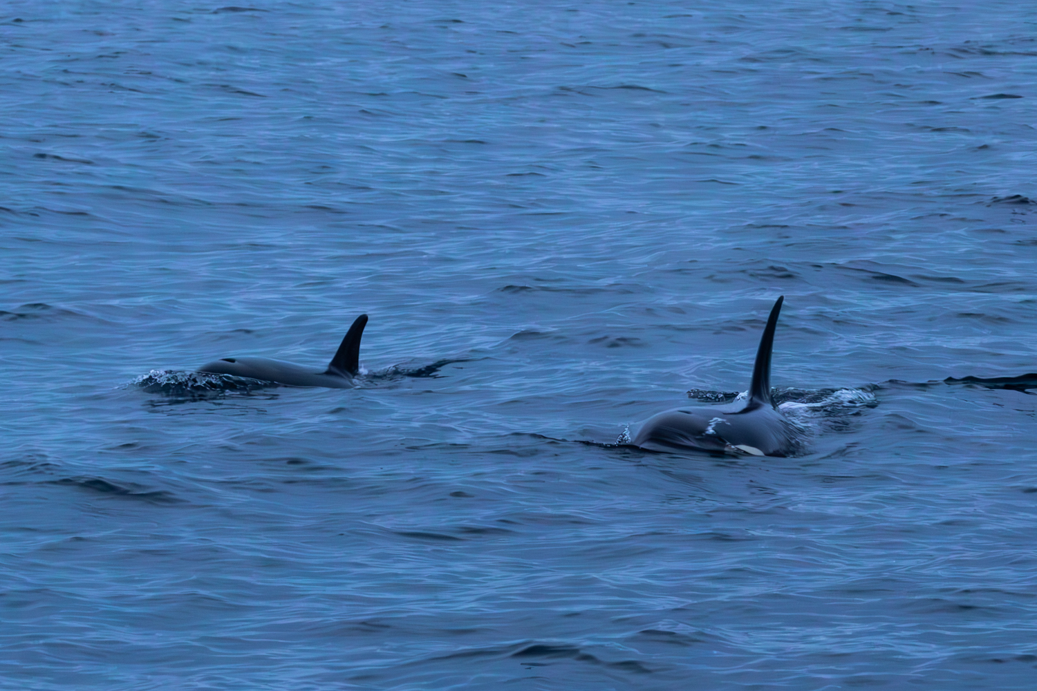 Nous aurons également la chance d’observer les orques. Malheureusement, ils se montrent plutôt furtifs et en déplacement permanent. Pas de comportement particulier, ni saut, ni spy-hopping. Mais le cadre magique fait vite oublier le reste.