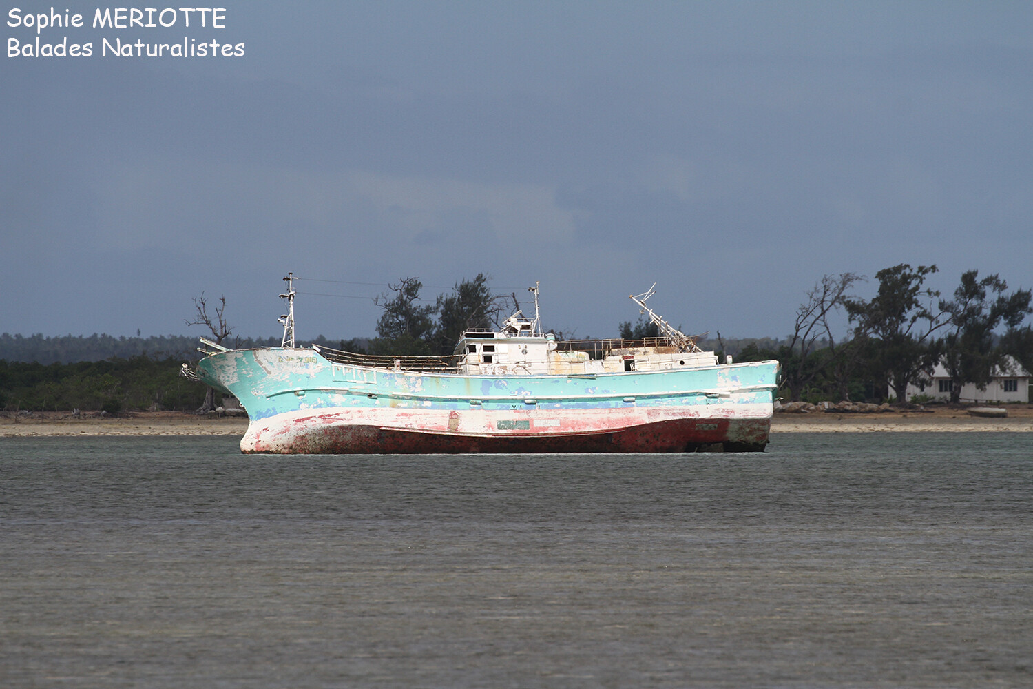 De retour au snack, j’enfile palmes, masque et tuba. Pas de coraux ici et très peu de visibilité, on ne voit pas à plus d’un mètre, pas très rassurant même si les locaux disent qu’il n’y pas de requin ici. Honnêtement, je ne vois pas pourquoi il n’y en aurait pas … Je longe l’épave qui s’enfonce assez rapidement dans les profondeurs. Mais je ne suis vraiment pas rassurée par ce manque de visibilité, d’autant que je suis seule dans l’eau. Je préfère finalement retourner sur la plage. La Nouvelle-Calédonie m’aura appris que, dans le Pacifique on ne se baigne pas seule dans une eau si trouble ! J’applique la règle ! Je prends donc le temps de me poser et de bouquiner un peu. 16h arrive vite et nous retournons sur l’île principale. Je prends le temps d’acheter deux trois bricoles pour grignoter ce soir et je rentre tranquilou à l’hôtel.