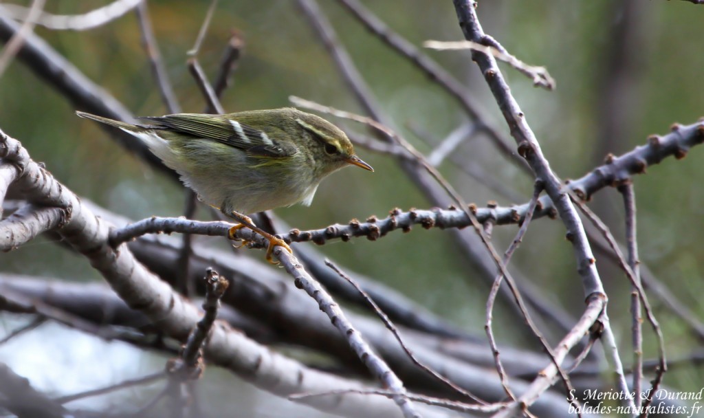 Mais nous allons un peu compliquer les choses en rajoutant une troisième espèce : le pouillot de Pallas. Il s’agit également d’un migrateur rare. Mais le hasard cette année a fait qu’un individu a été observé à Marseille en compagnie des deux Hume le 16 décembre (donnée faune-paca). Assez dingue je vous l’accorde ! Mais cette espèce possède une caractéristique qui permet de le distinguer aisément des deux autres : une raie sommitale bien nette.