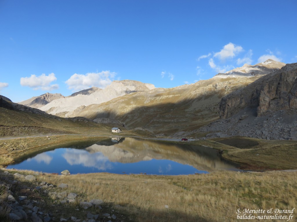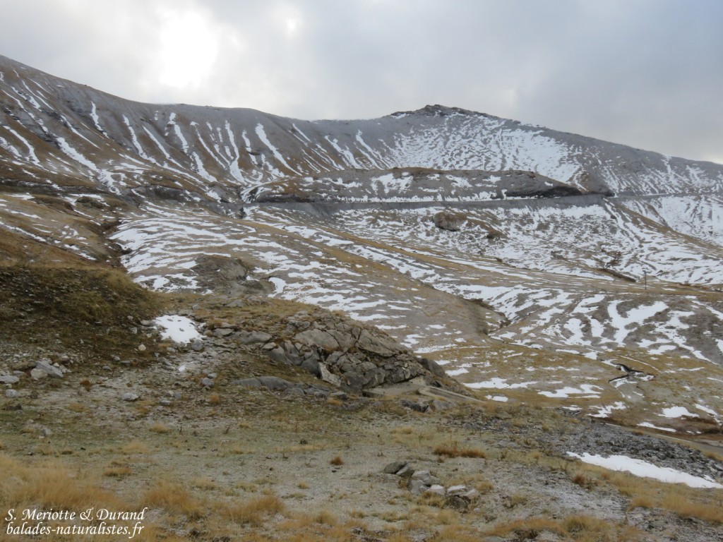 Samedi 10 octobre. Nous avons passé la nuit sur la route en sortie de Jausiers au pied du col. Au petit matin, nous commençons l’ascension. Le ciel s’assombrit et les températures sont déjà quasi-hivernales ! Nous faisons halte au refuge de Restefond en espérant observer les oiseaux de haute montagne comme les niverolles alpines ou les accenteurs, mais l’ambiance est assez calme.