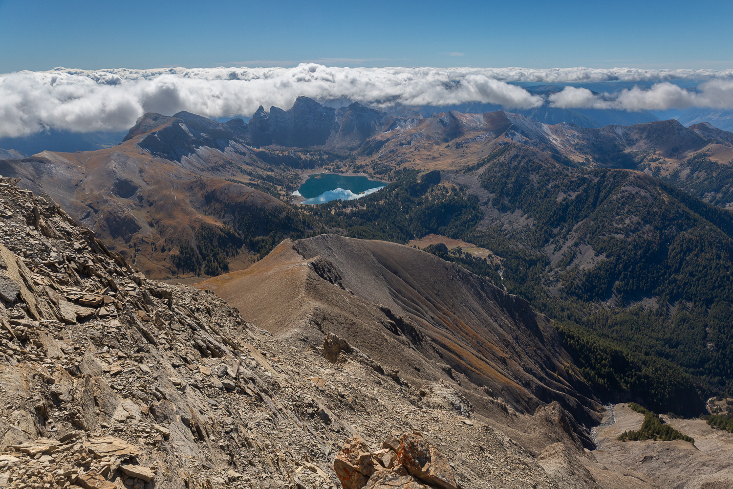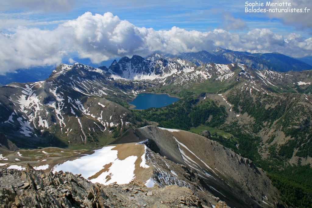 Depuis le sommet, on se dit que la vue vaut bien cet effort ! un panorama à 360° sur les Alpes du Sud, ce n'est pas tous les jours que l'on peut admirer un tel spectacle, avec en prime, une vue imprenable sur le lac. Dur de se motiver à redescendre, on pourrait rester là des heures !