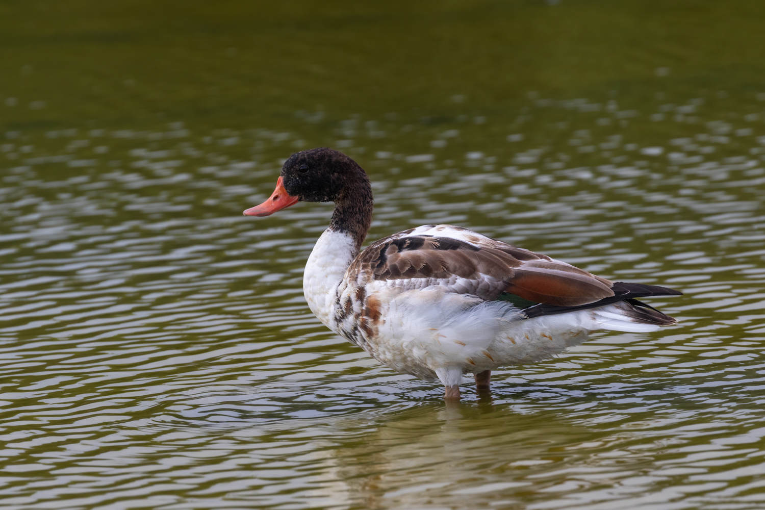 Des observatoires ont été aménagés pour faciliter l’observation des oiseaux. C’est l’occasion de s’immerger véritablement dans l’ambiance de ces zones humides fragiles. Un tadorne de Belon, commençant déjà à muer passe juste devant mon objectif.