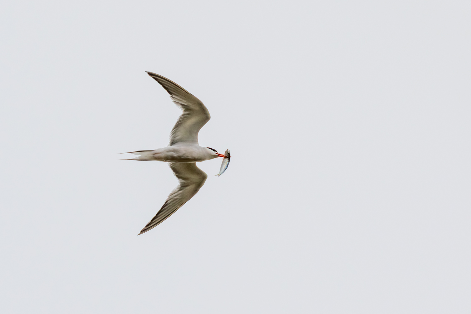 Même si nous somme mi-août et que la reproduction touche à sa fin, les sternes alimentent encore leurs gros poussins déjà volants. Les adultes vont et viennent, poisson dans le bec, tandis que les jeunes attendent en piaillant.