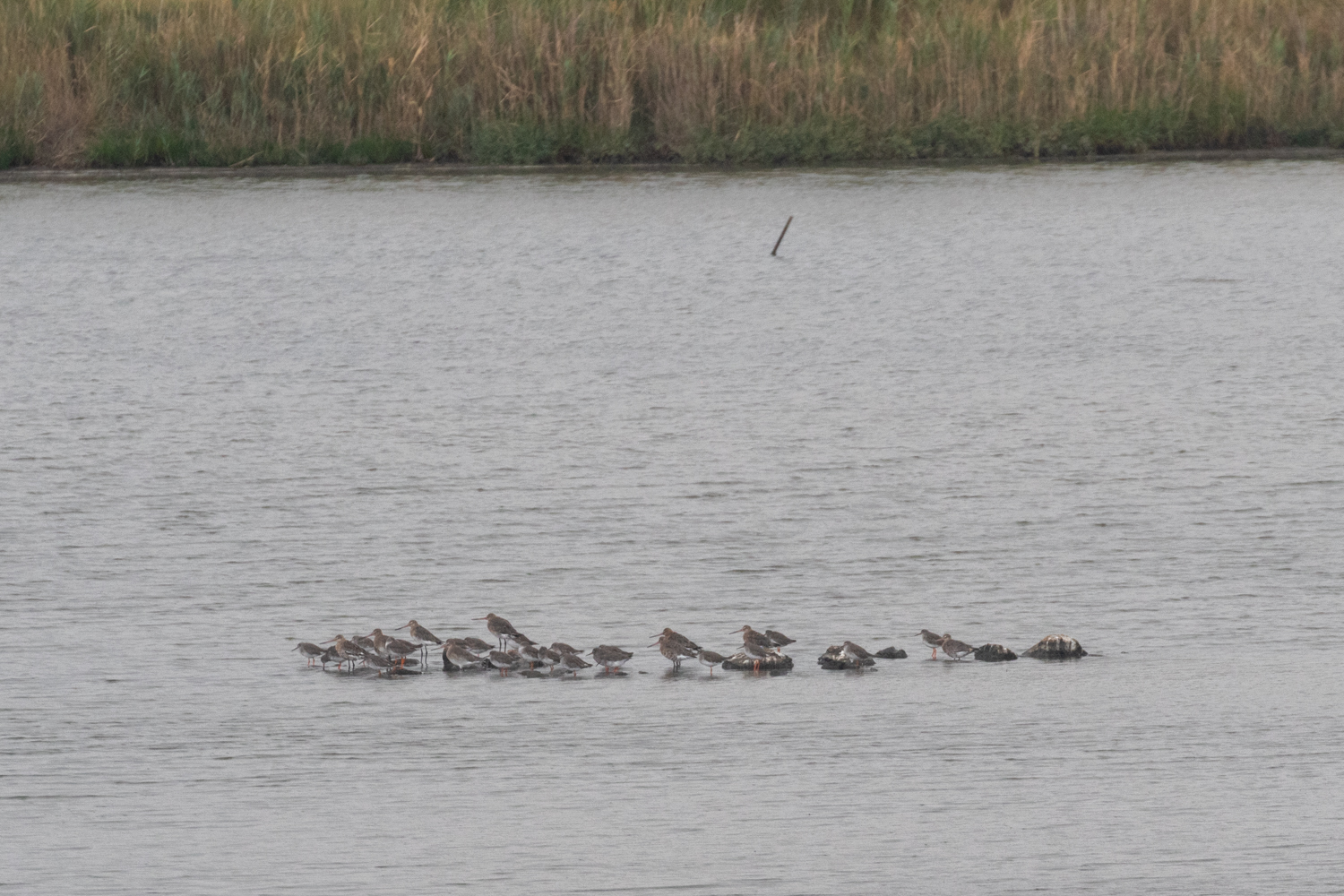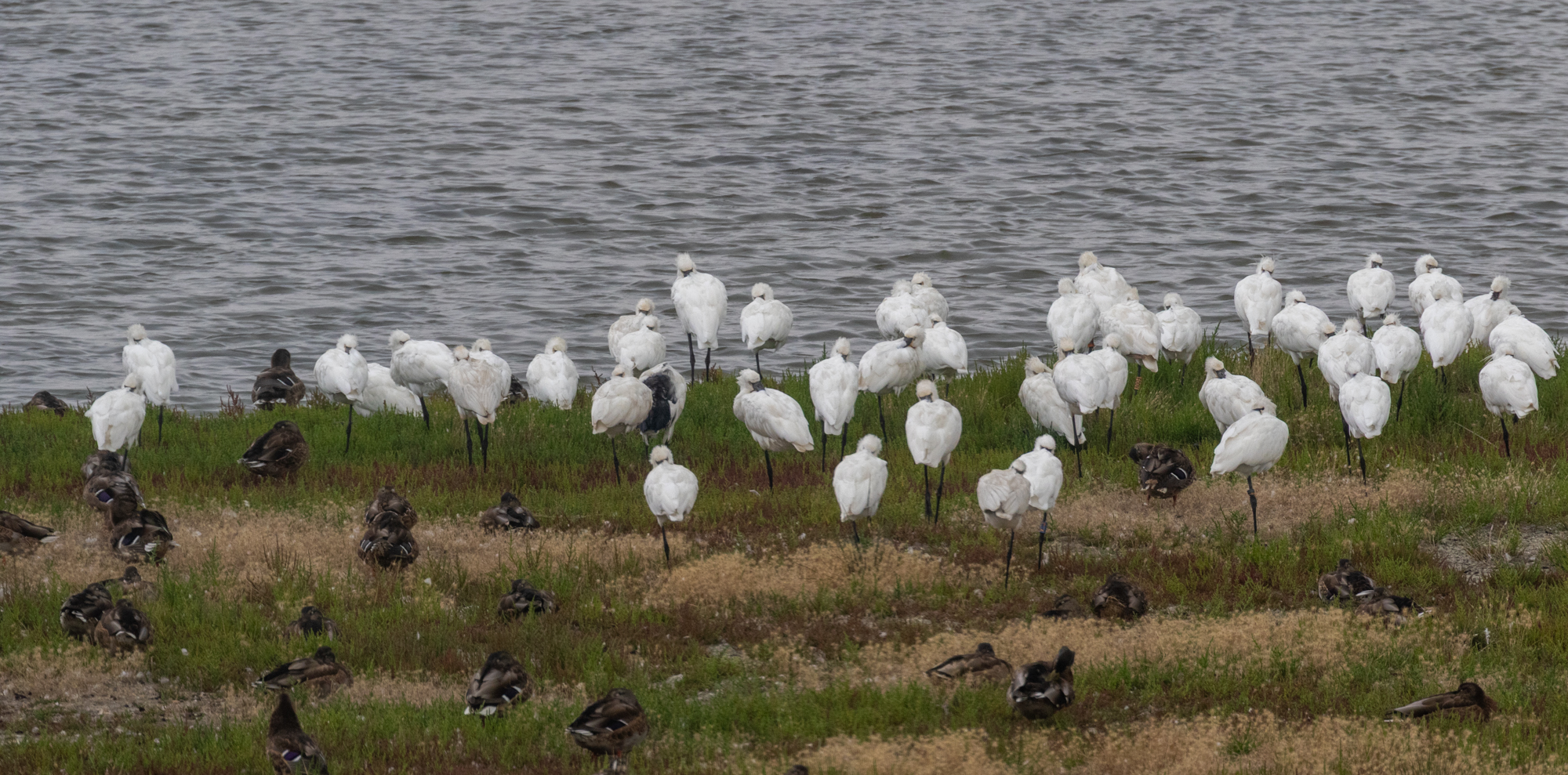 C’est sous la pluie que j’ai découvert ces marais. Une piste interdite à la circulation permet de gagner une tourd d’observation. Les limicoles sont très nombreux : barge à queue noire, chevaliers gambette, aboyeur, combattants … Un groupe d’une centaine de spatules s’est également installé sur un îlot. Une belle richesse sur une petite zone !