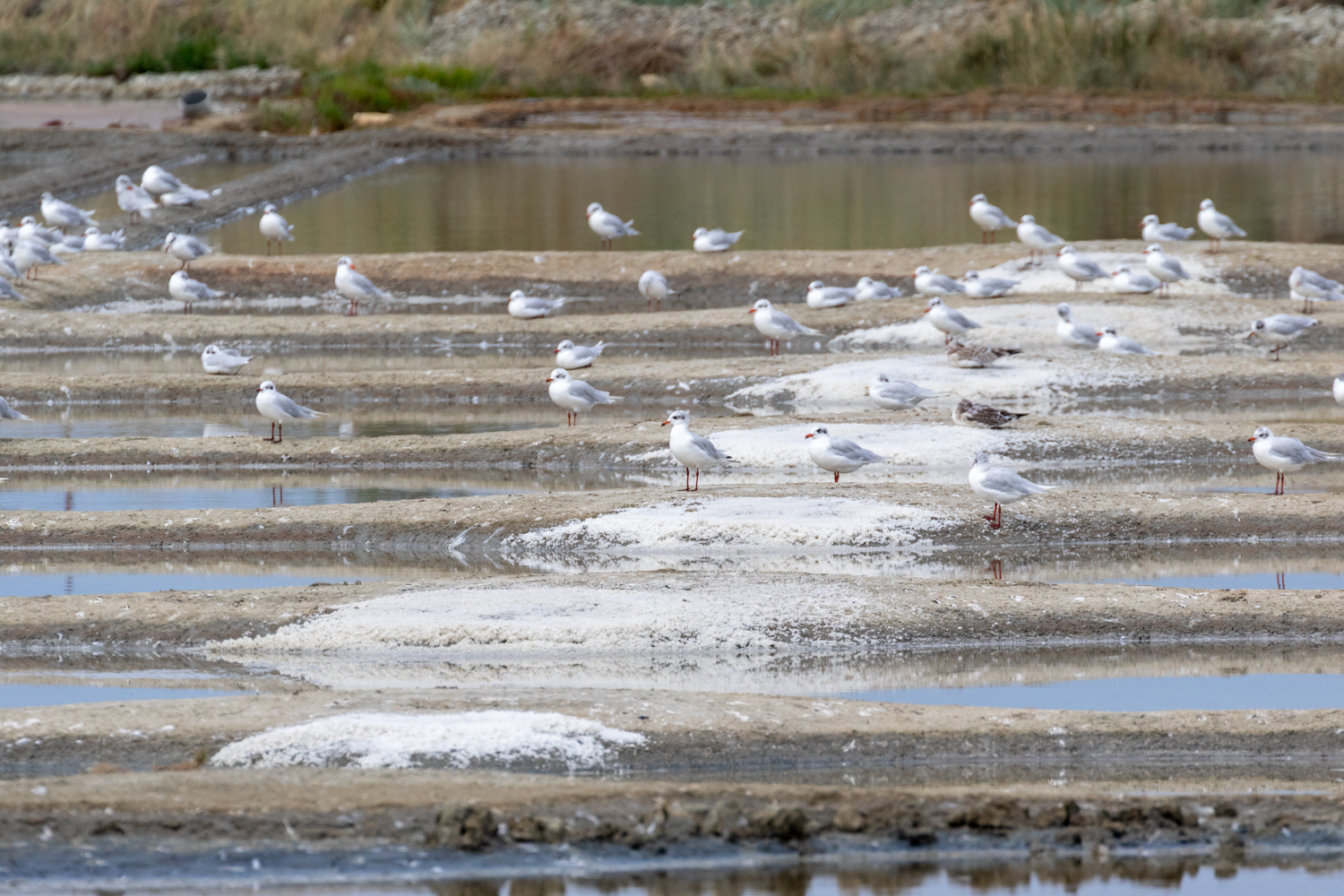 Petit halte au marais salants de Lasé, un circuit permet de faire une balade dans le site. Ces anciens marais, aujourd’hui en partie remis en activité, forment une mosaïque de bassins peu profonds, vasières, diguettes et prés salés, offrant des habitats variés particulièrement favorables aux limicoles et aux échassiers. Aujourd’hui c’est tout un groupe de mouettes mélanocéphales qui ont pris possession du site.