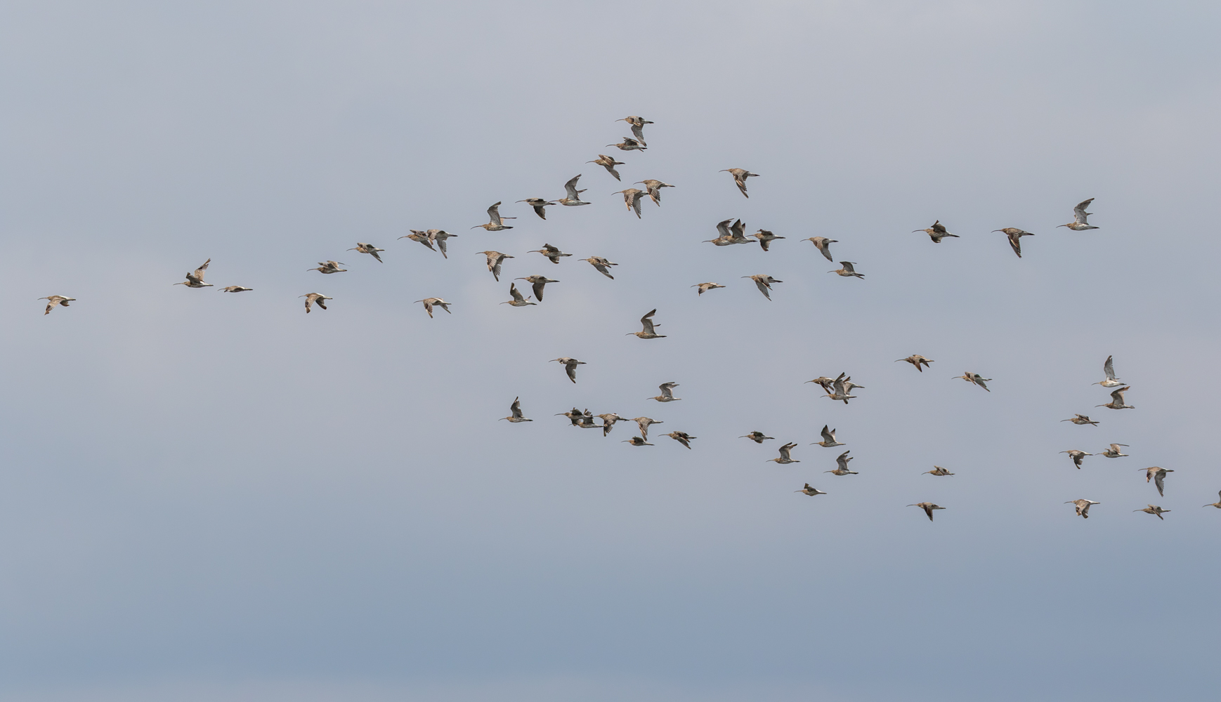 La marée monte et il est impossible de se rendre sur l’île. L’aire de pique-nique est agréable. Un important groupe de courlis cendré prend alors son envol pour gagner des zones encore à sec.