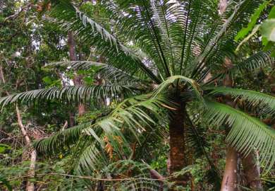 Je redescends à la balise pour suivre le sentier qui mène à la baie des tortues au milieu d’imposants pins colonnaires.