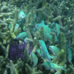 La zone intéressante se situe au milieu de la baie et il faut avoir un peu d’endurance pour l’atteindre. Mais pour ceux qui le souhaitent, il est possible de s’arranger avec les pêcheurs ou le restaurateur de la baie qui vous guideront et déposeront avec leur barque au bon endroit. Bon, le jour où nous y étions, cette fameuse barque était en panne, ce qui ne nous a pas empêché de nager jusqu’à ce qu’ils appellent “l’aquarium”.
