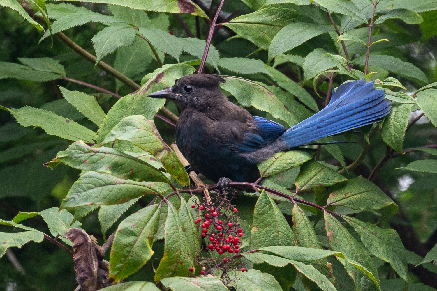 Le forest camping campground est un point de départ parfait pour un départ de balade en forêt. Le camp est lui-même un super spot pour observer les oiseaux comme ces geais de Steller plutôt coopératifs ainsi que les pigeons à queue barrée.