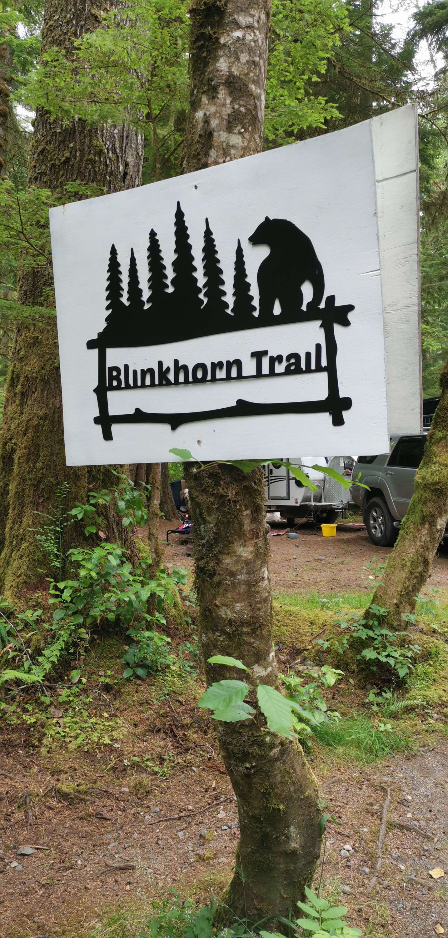 Mardi 6 août, alors que la météo plonge la météo dans la grisaille, nous attaquons le blinkhorn trail. Pensez à vous inscrire sur le registre au camping avant de partir pour des raisons de sécurité. Avec les pumas et les ours qui baladent dans le coin, mieux vaut être prudent. Nous n’avons pas fait une longue marche mais sommes allés jusqu’au point de vue. La forêt est très sympa mais n’avons croisé aucun mammifère.