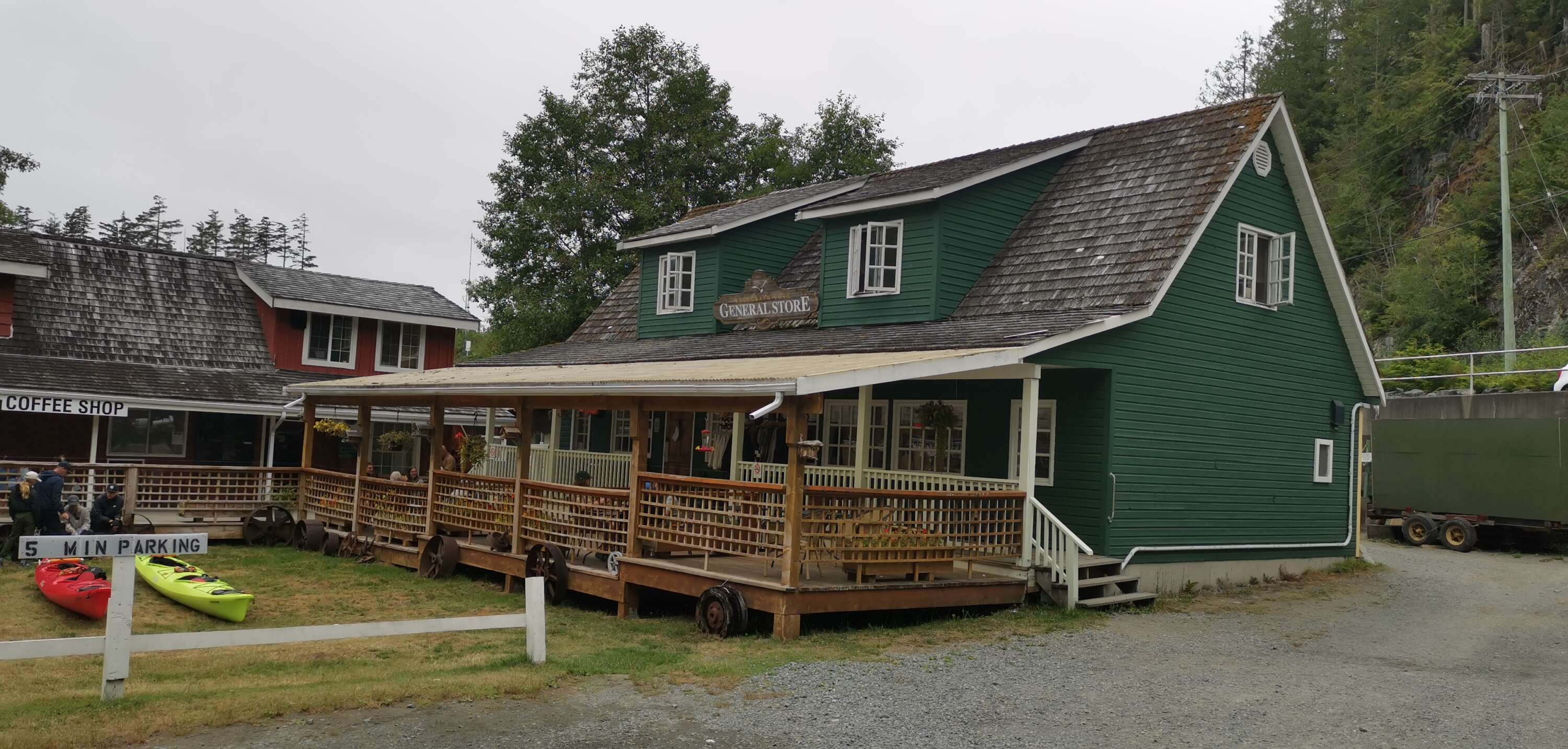 Vous pourrez trouver une petite supérette dans Telegraph Cove mais bien peu achalandée et affichant des tarifs plus élevés. Cela peut dépanner pour un achat d’appoint mais je vous recommande de vous ravitailler à Port Hardy avant de venir où vous trouverez de grands supermarchés.