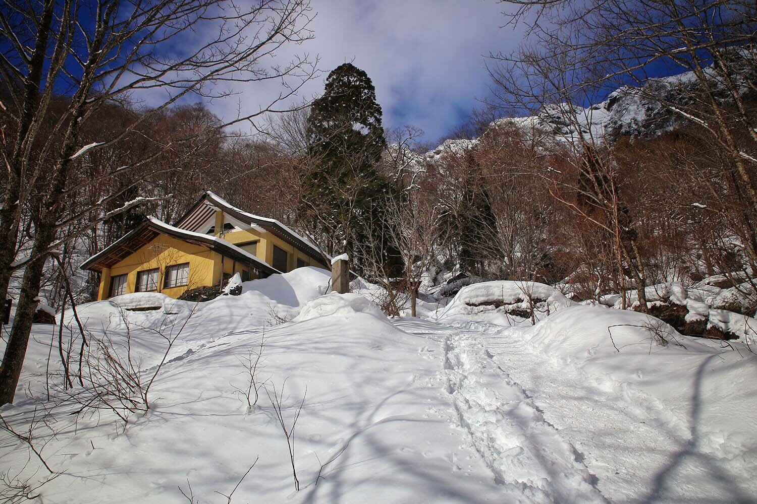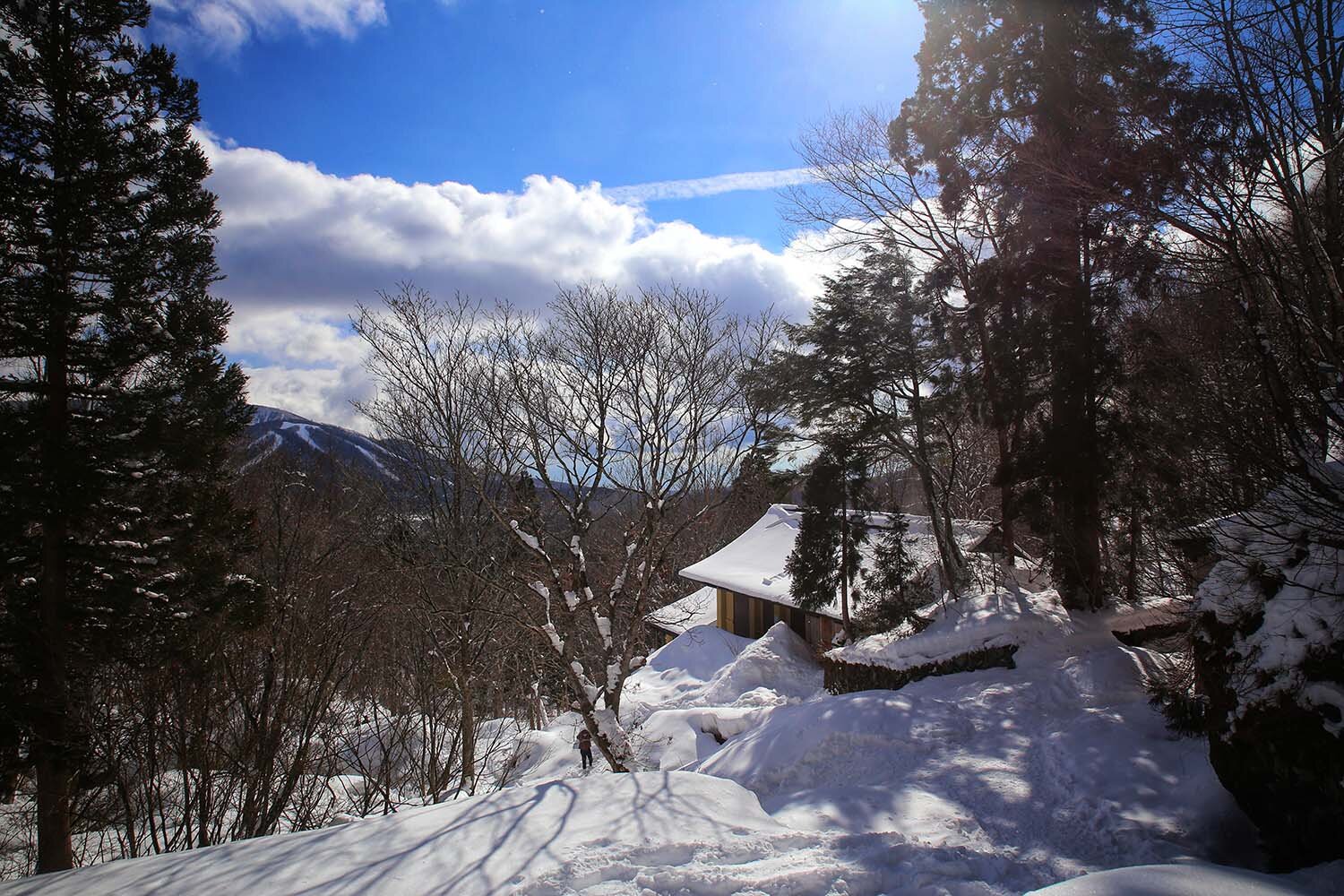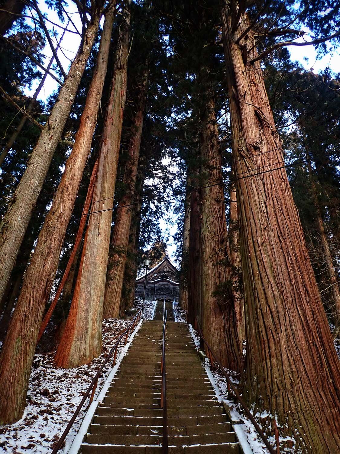 Certes la neige ne facilite pas l’avancée et les derniers mètres de la montée ne sont pas faciles. Mais une ambiance à la fois apaisante et mystique se dégage de ces lieux au pied de la vaste muraille formée par les falaises de la montagne. Un petit temple surplombe la vallée et marque la fin du cheminement. Le regard se perd dans le paysage pour mieux se retrouver en harmonie avec la nature. Une escale imprévue, mais l’une des plus belles découvertes de ce voyage d’un mois au pays du Soleil levant.