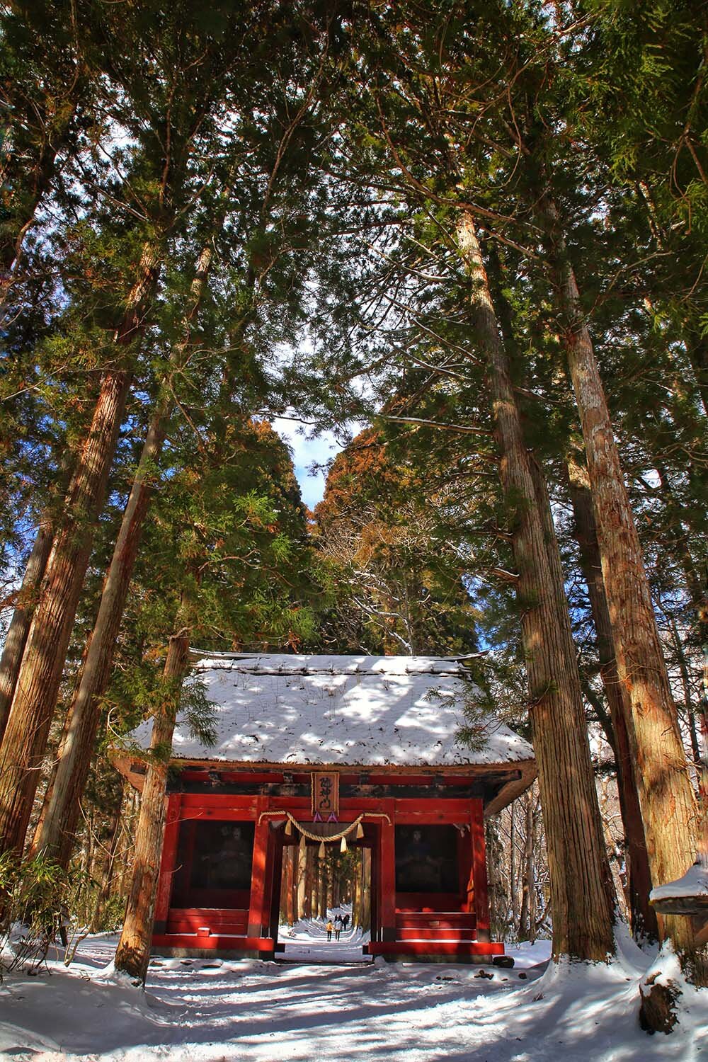 Je reprends la voiture pour gagner le parking au pied du sentier montant au deux temples Okusha Shrine et Kuzuryusha Shrine. Comptez deux heures de marche pour y parvenir. Un premier tori marque l’entrée. A mi-chemin, vous traversez la porte Zuishinmon et son toit de chaume. Certains des cèdres qui jalonnent le parcours ont plus de 400 ans classés monuments naturels.