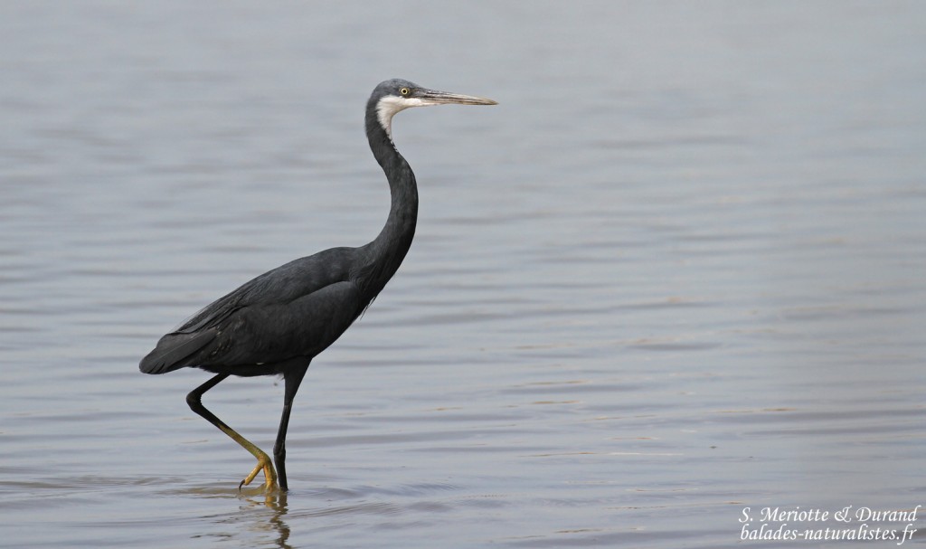 L’aigrette des récifs est une espèce africaine. Elle peut présenter deux types de plumage : la forme claire et la forme sombre. Dans son plumage clair, l’aigrette des récifs ressemble fortement à une aigrette garzette. Les critères de distinction sont la couleur des pattes moins nette et un bec plus épais et incurvé. Il est plus facile de reconnaître la phase sombre. Le plumage est gris ardoisé avec la gorge blanche. Le poignet présente généralement une tâche blanche. Ce qui n’est pas pour faciliter notre affaire est qu’il existe également des formes intermédiaires essentiellement grises avec des zones blanches.