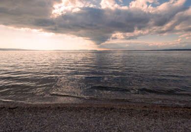 Nous revenons en fin d’après-midi pour retenter notre chance. Nous apercevons au loin l’aigrette hybride posée au bord de l’étang de Berre, sur une petite plage.